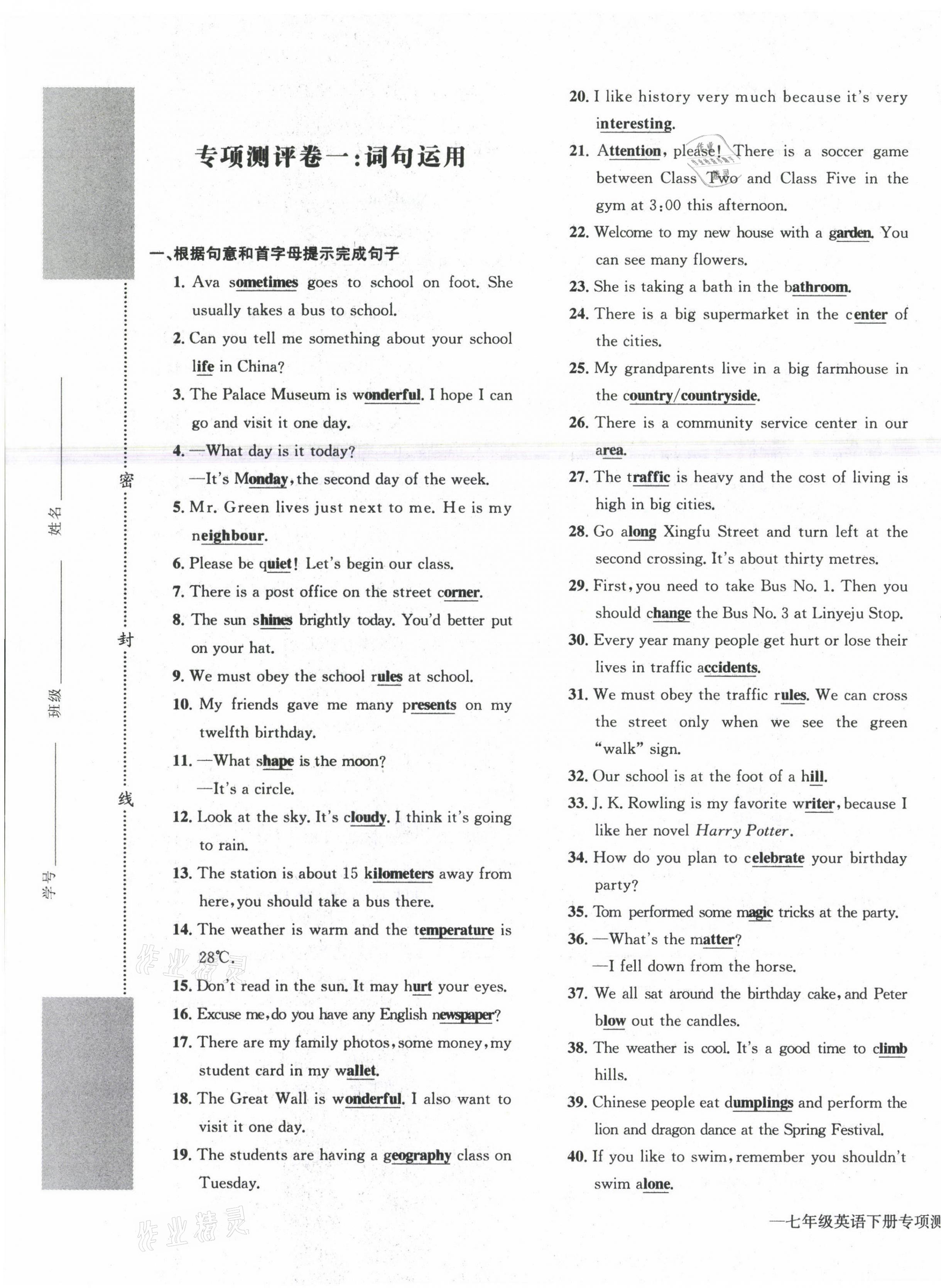 注:目前有些书本章节名称可能整理的还不是很完善,但都是按照顺序排列的,请同学们按照顺序仔细查找。练习册 2021年学业评价测评卷七年级英语下册人教版 答案主要是用来给同学们做完题方便对答案用的,请勿直接抄袭。