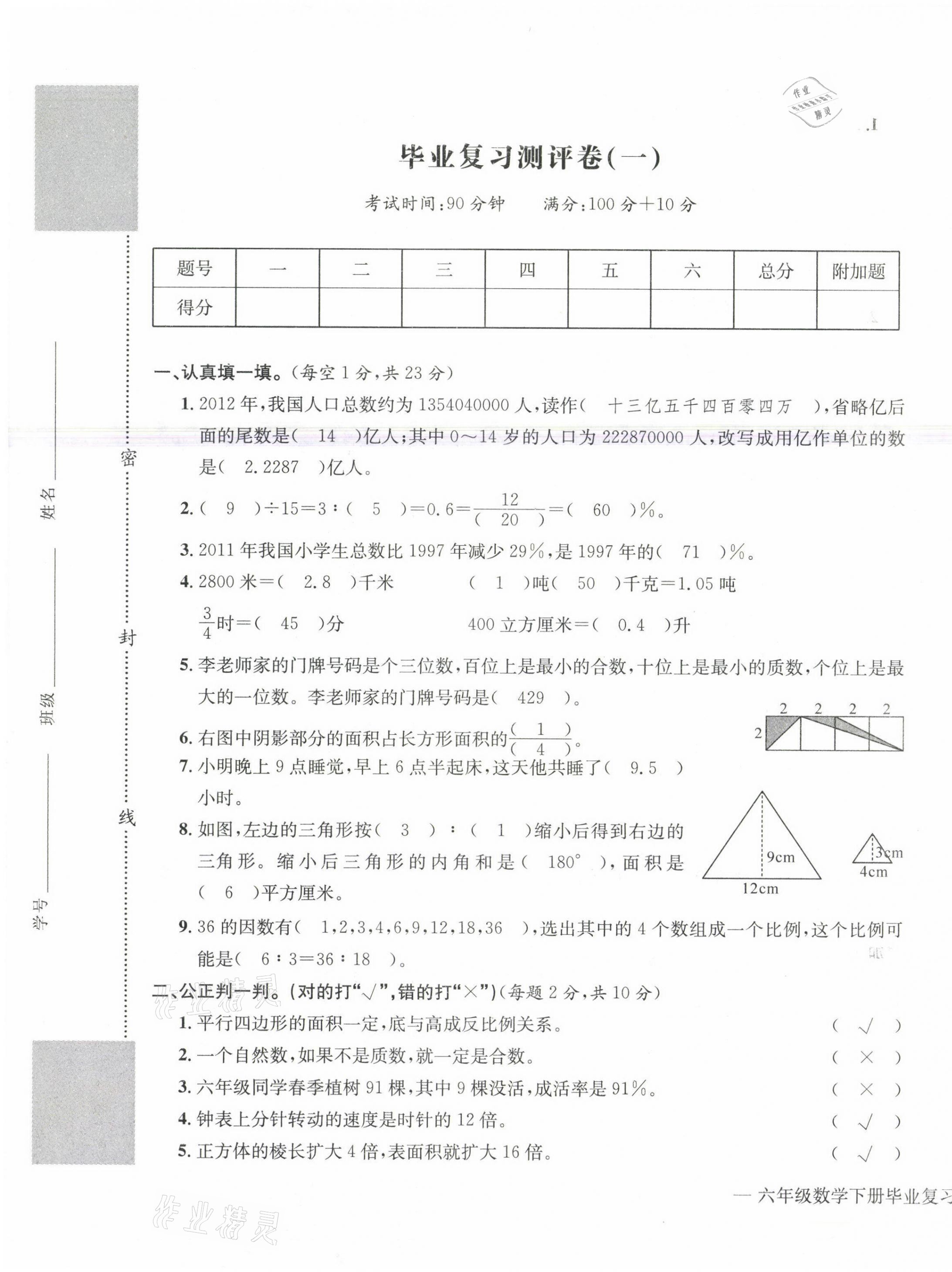 注:目前有些书本章节名称可能整理的还不是很完善,但都是按照顺序排列的,请同学们按照顺序仔细查找。练习册 2021年学业评价测评卷六年级数学下册人教版 答案主要是用来给同学们做完题方便对答案用的,请勿直接抄袭。