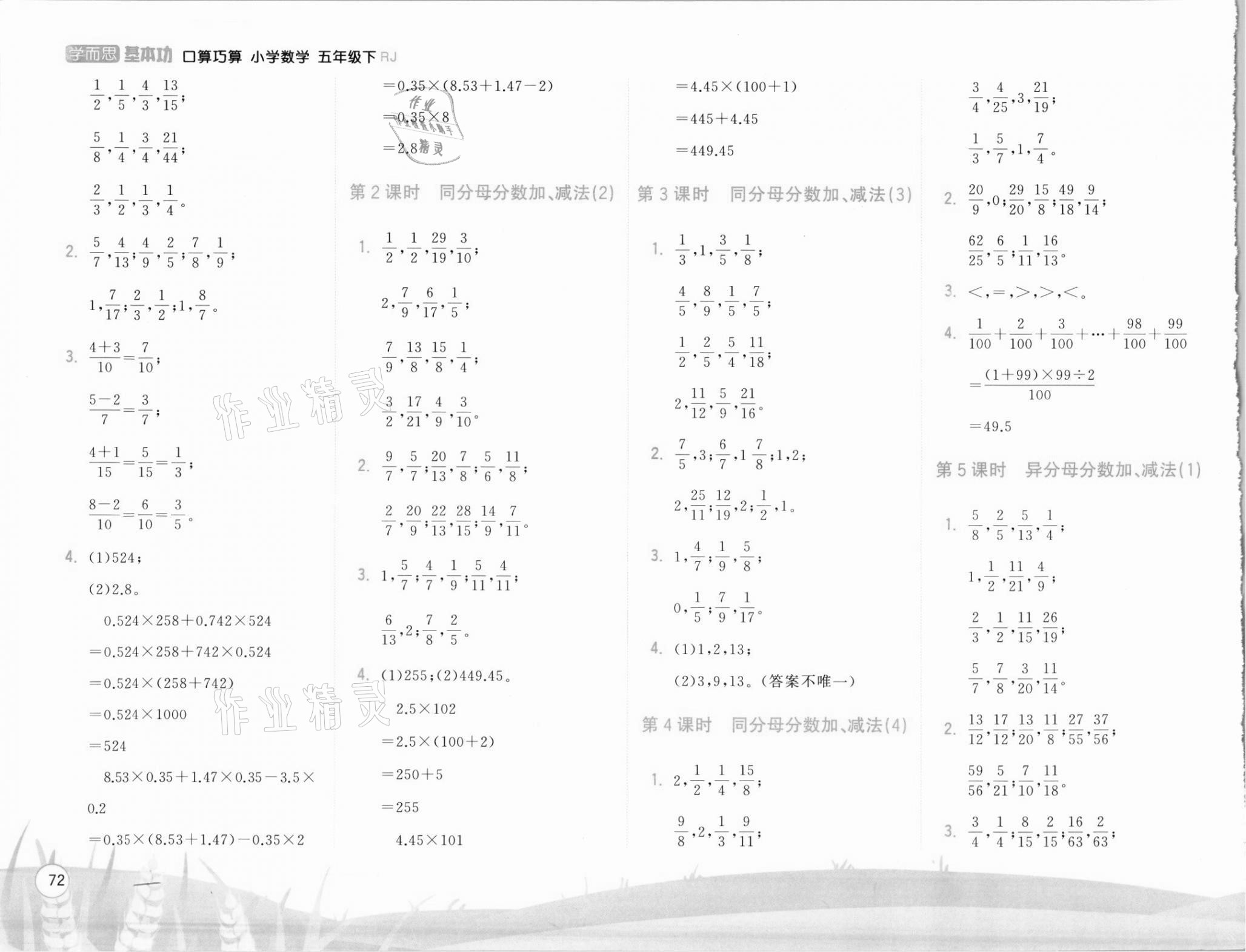 2021年学而思基本功口算巧算五年级数学下册人教版