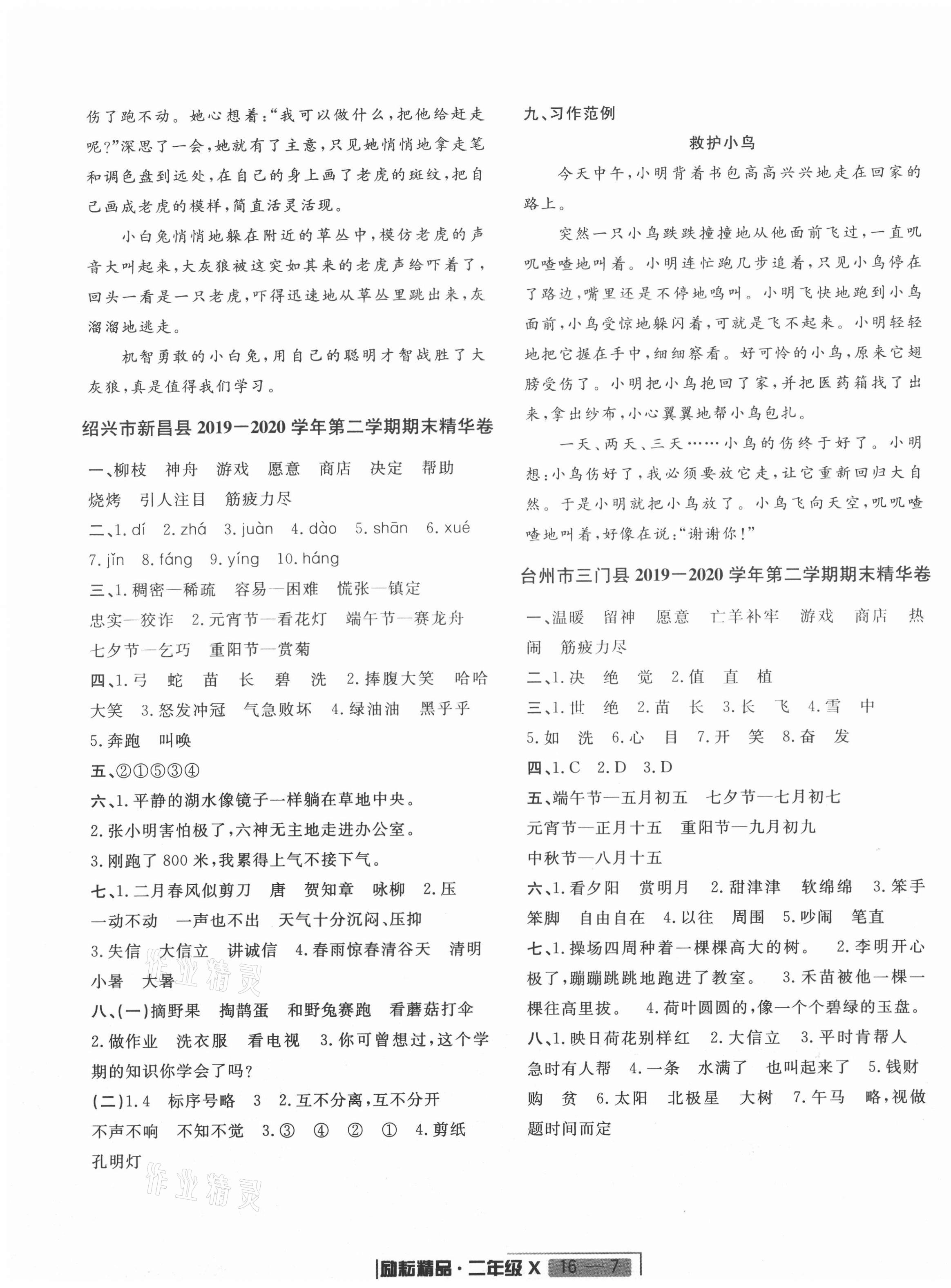 注:目前有些书本章节名称可能整理的还不是很完善,但都是按照顺序排列的,请同学们按照顺序仔细查找。练习册 2021年浙江新期末二年级语文下册人教版 答案主要是用来给同学们做完题方便对答案用的,请勿直接抄袭。