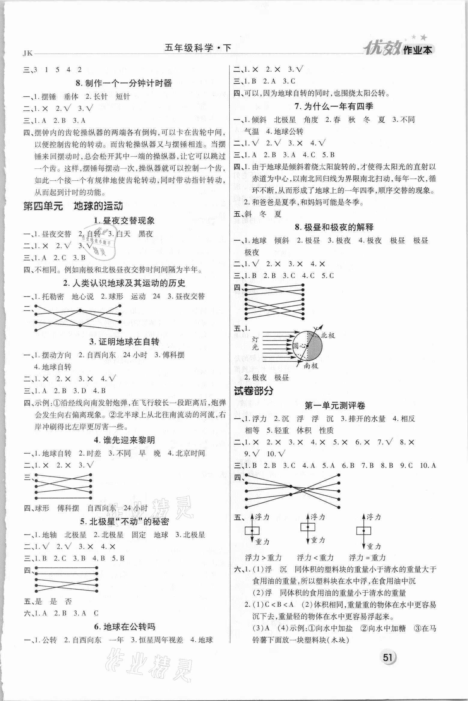 注:目前有些书本章节名称可能整理的还不是很完善,但都是按照顺序排列的,请同学们按照顺序仔细查找。练习册 2021年优效作业本五年级科学下册教科版 答案主要是用来给同学们做完题方便对答案用的,请勿直接抄袭。