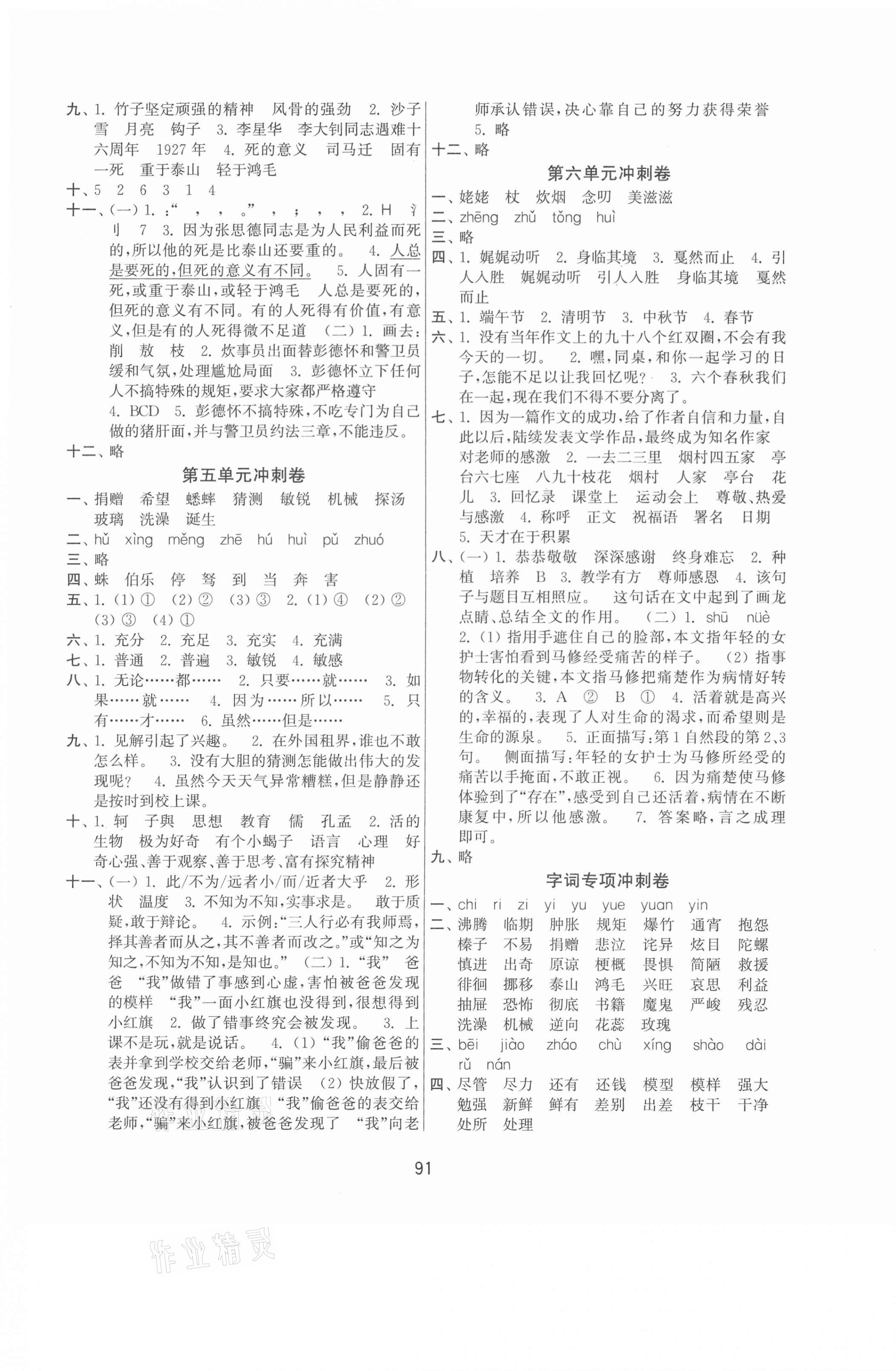 注:目前有些书本章节名称可能整理的还不是很完善,但都是按照顺序排列的,请同学们按照顺序仔细查找。练习册 2021年名师点拨期末冲刺满分卷六年级语文下册人教版 答案主要是用来给同学们做完题方便对答案用的,请勿直接抄袭。