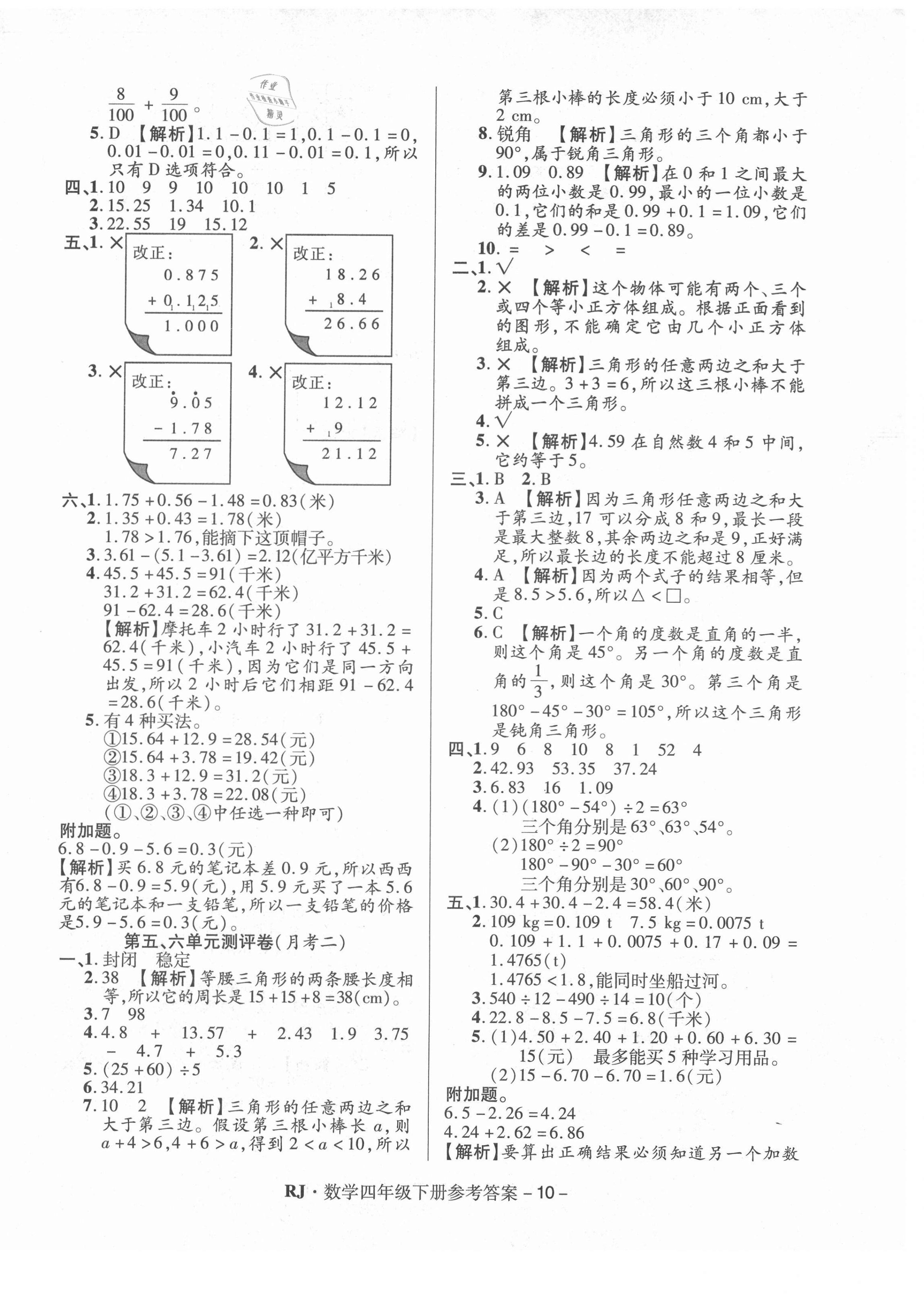 注:目前有些书本章节名称可能整理的还不是很完善,但都是按照顺序排列的,请同学们按照顺序仔细查找。练习册 2021年特优练考卷四年级数学下册人教版 答案主要是用来给同学们做完题方便对答案用的,请勿直接抄袭。
