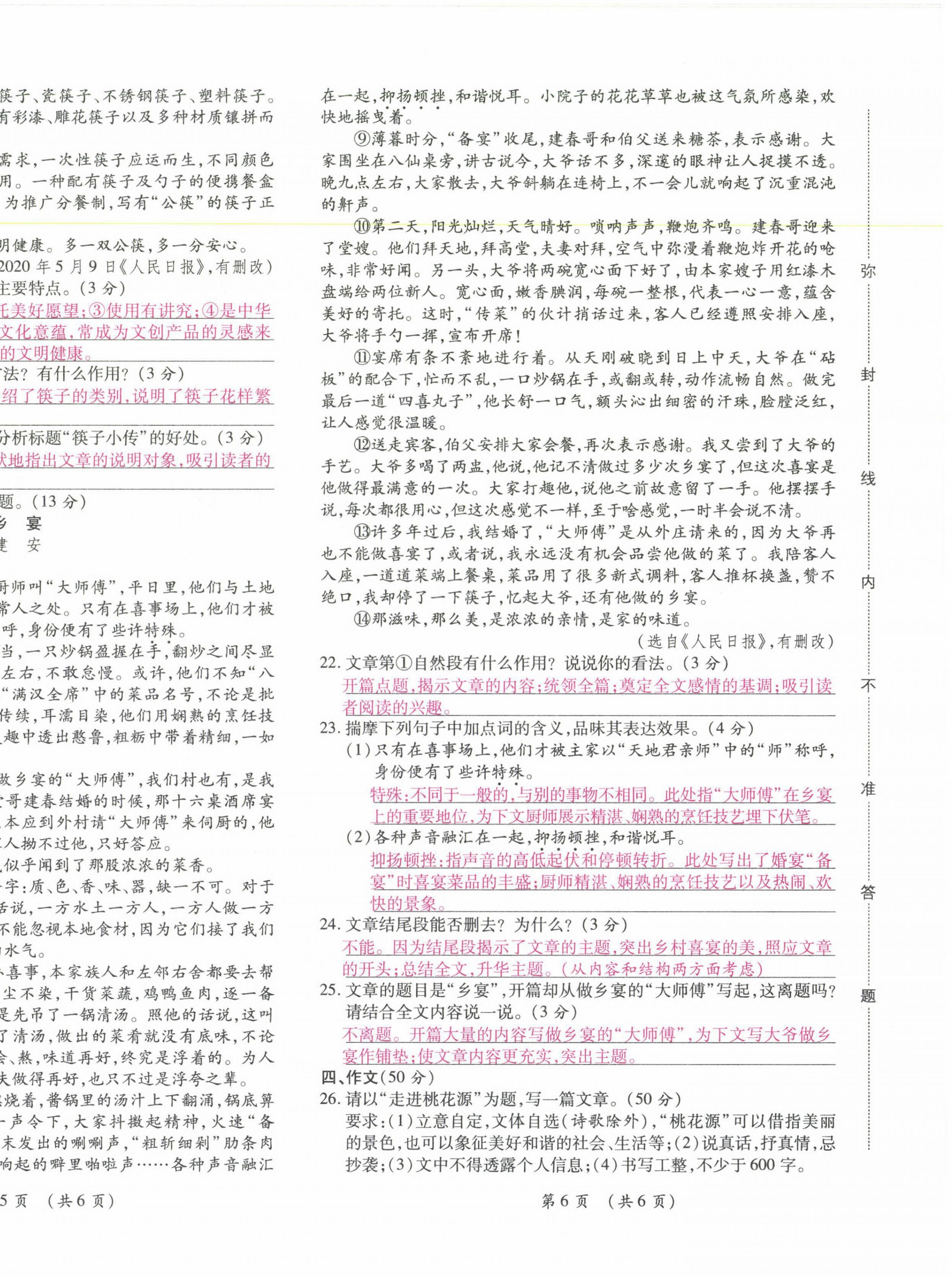 2021年中考满分直通车核心金卷八年级语文下册人教版云南专版