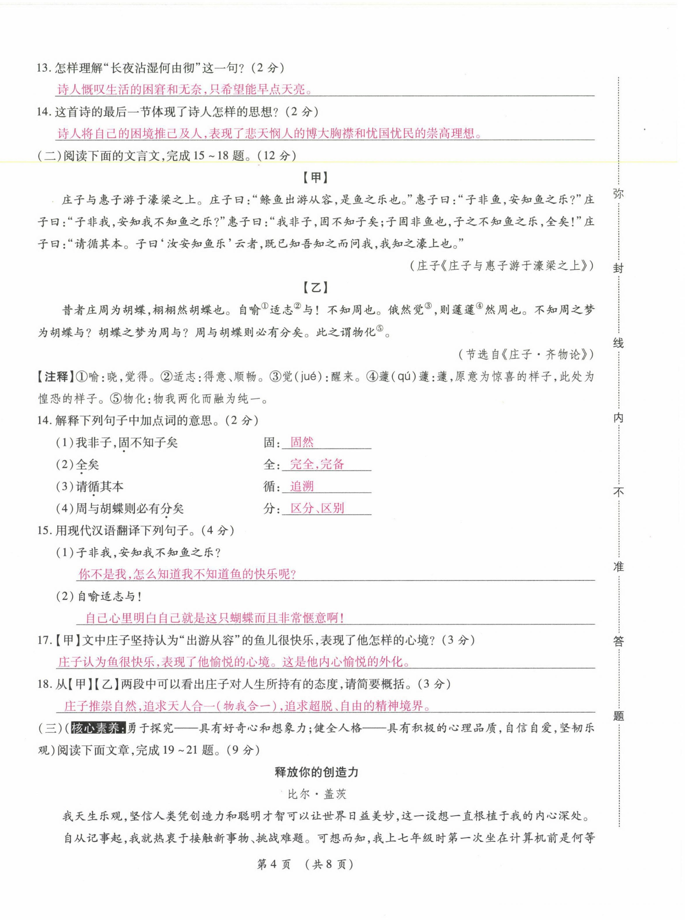 注:目前有些书本章节名称可能整理的还不是很完善,但都是按照顺序排列的,请同学们按照顺序仔细查找。练习册 2021年中考满分直通车核心金卷八年级语文下册人教版云南专版 答案主要是用来给同学们做完题方便对答案用的,请勿直接抄袭。