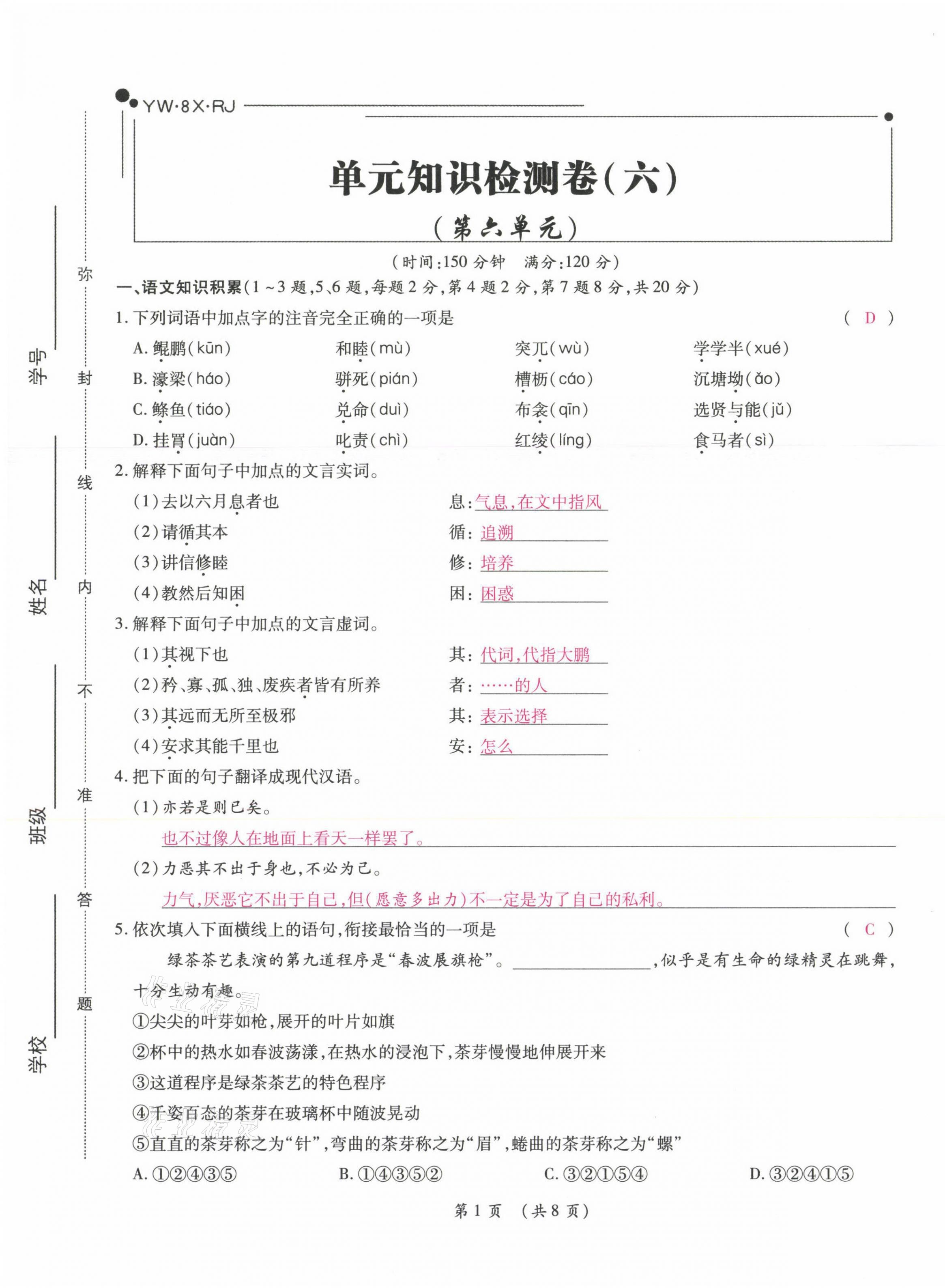 注:目前有些书本章节名称可能整理的还不是很完善,但都是按照顺序排列的,请同学们按照顺序仔细查找。练习册 2021年中考满分直通车核心金卷八年级语文下册人教版云南专版 答案主要是用来给同学们做完题方便对答案用的,请勿直接抄袭。