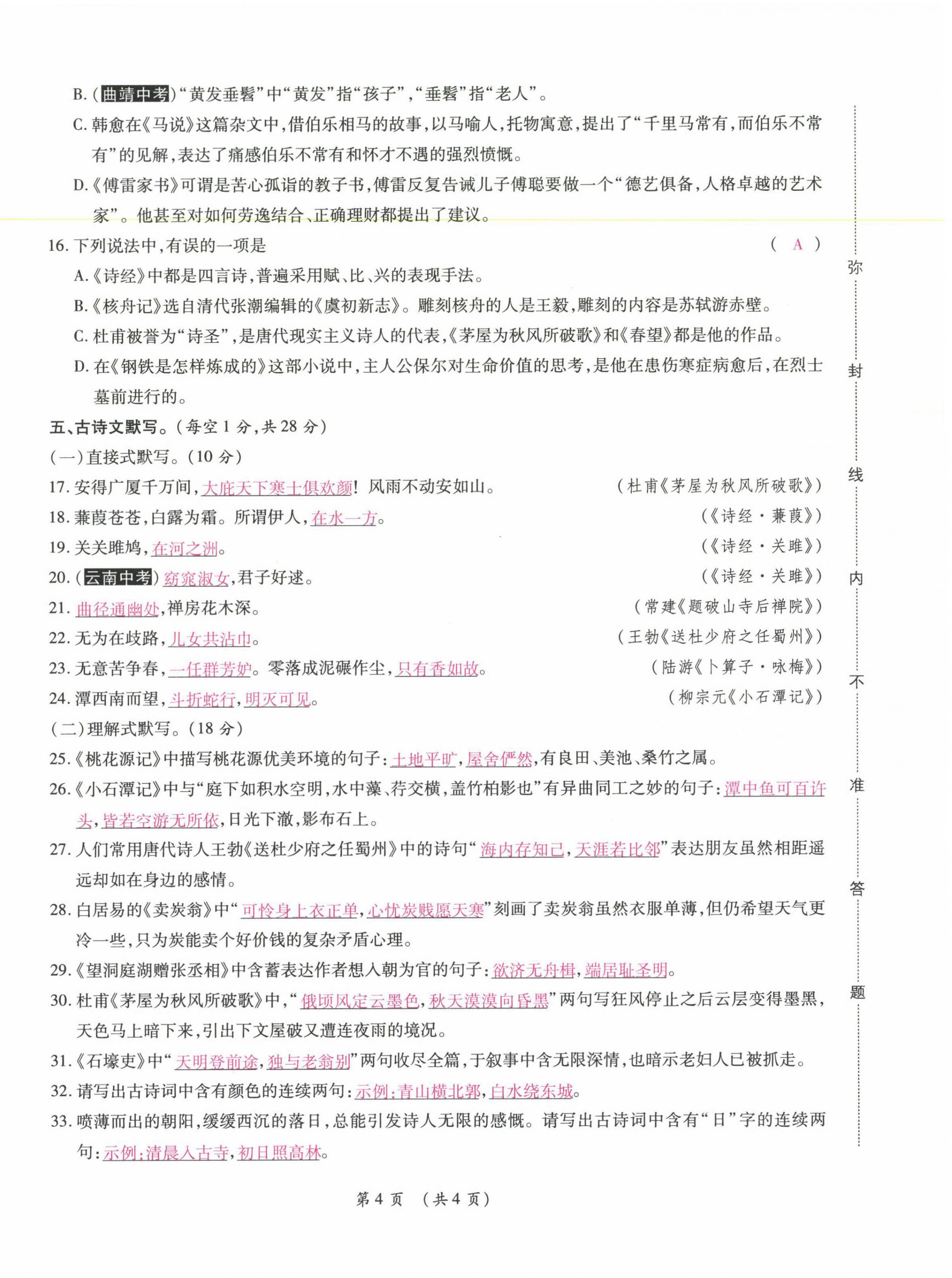 2021年中考满分直通车核心金卷八年级语文下册人教版云南专版