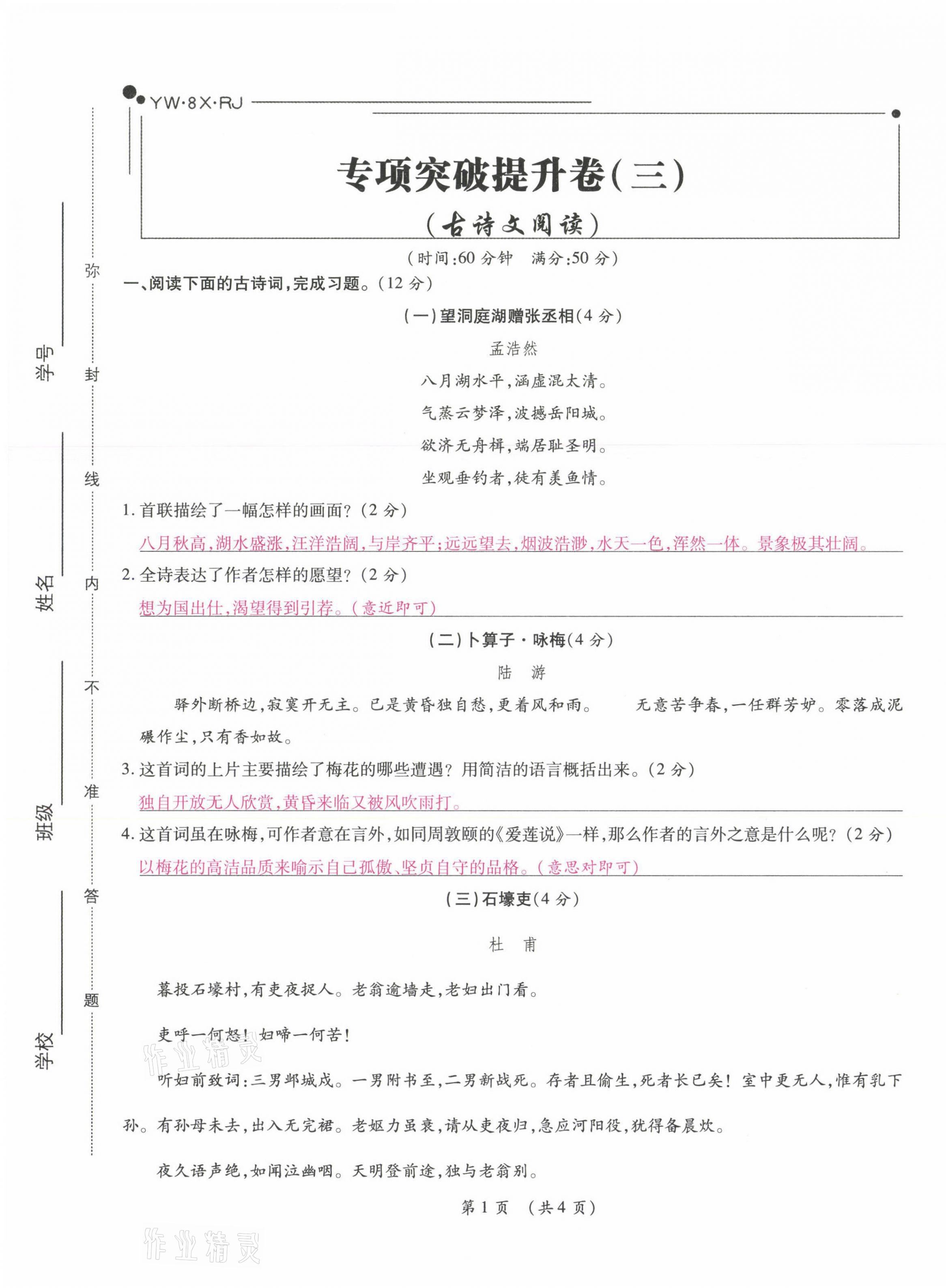 2021年中考满分直通车核心金卷八年级语文下册人教版云南专版