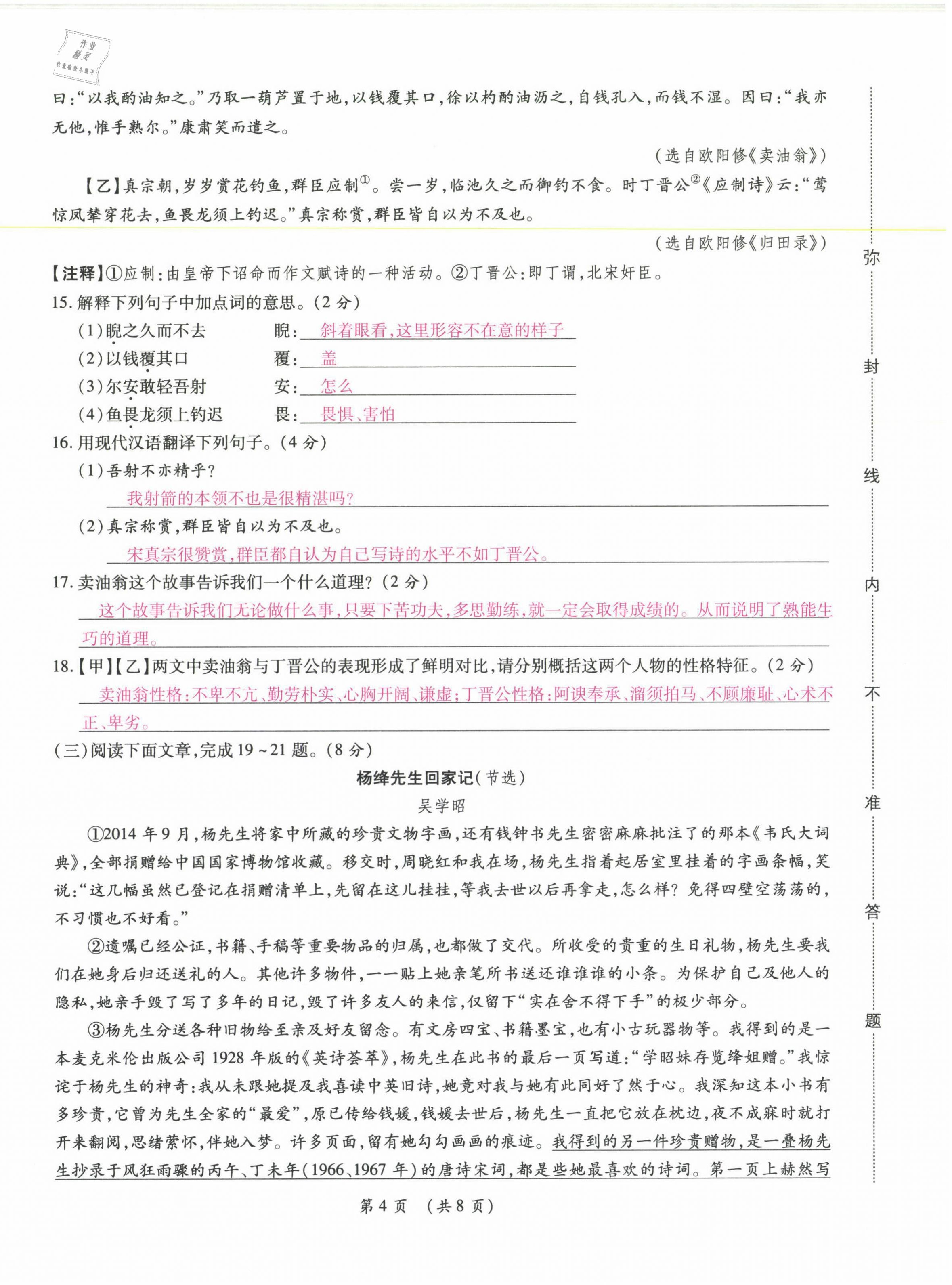 2021年中考满分直通车核心金卷七年级语文下册人教版云南专版