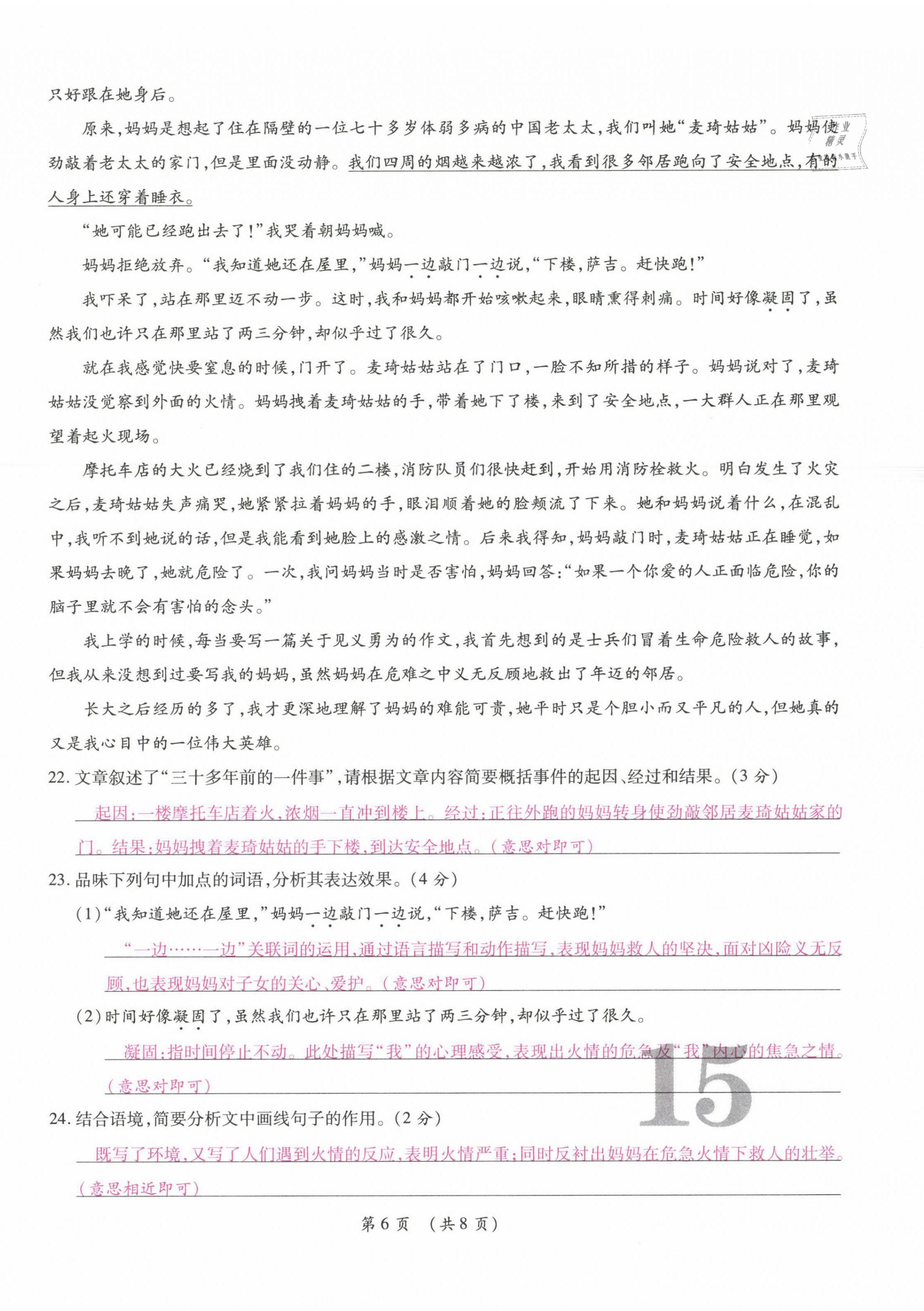 2021年中考满分直通车核心金卷七年级语文下册人教版云南专版