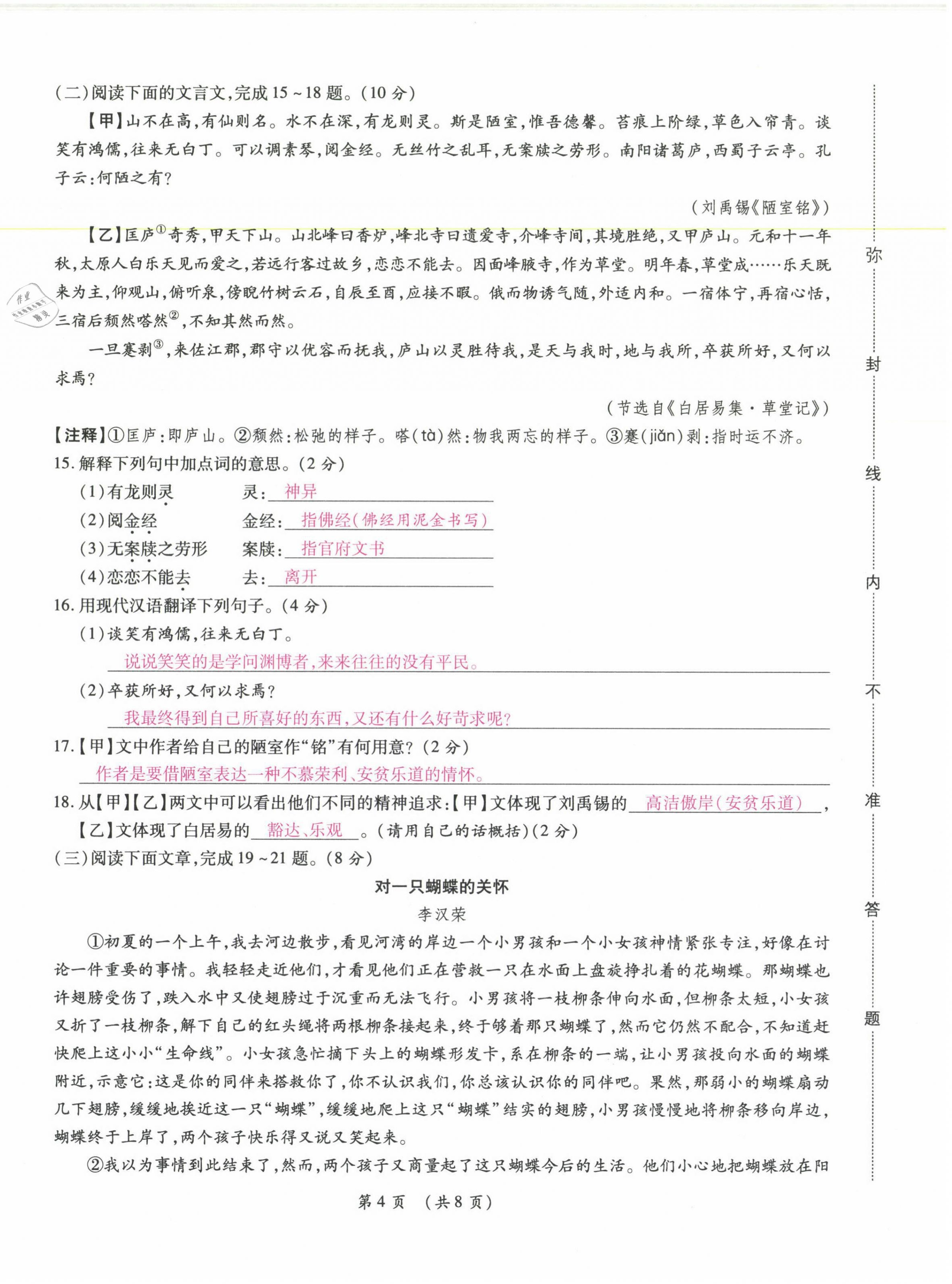2021年中考满分直通车核心金卷七年级语文下册人教版云南专版