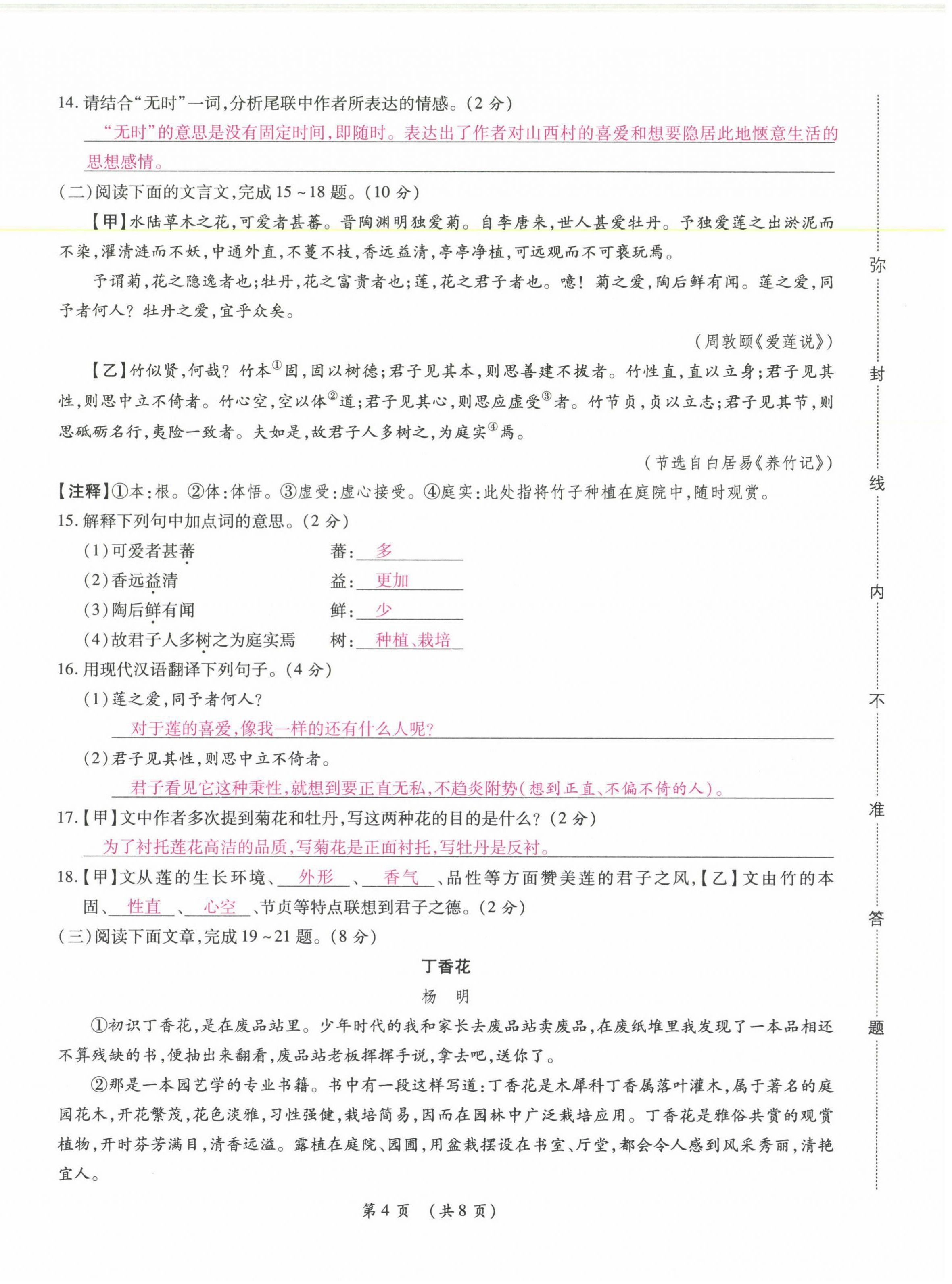 2021年中考满分直通车核心金卷七年级语文下册人教版云南专版
