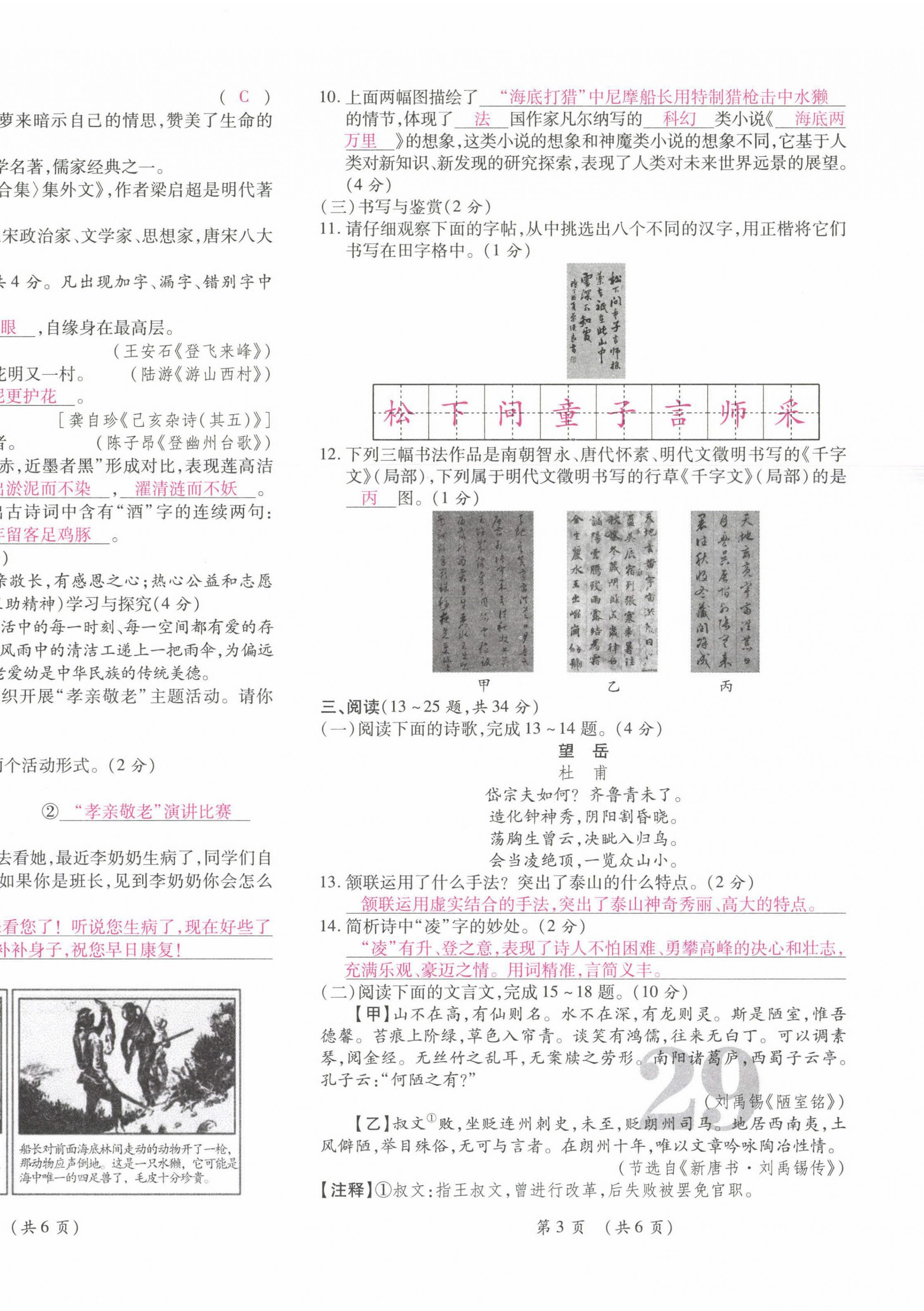 2021年中考满分直通车核心金卷七年级语文下册人教版云南专版