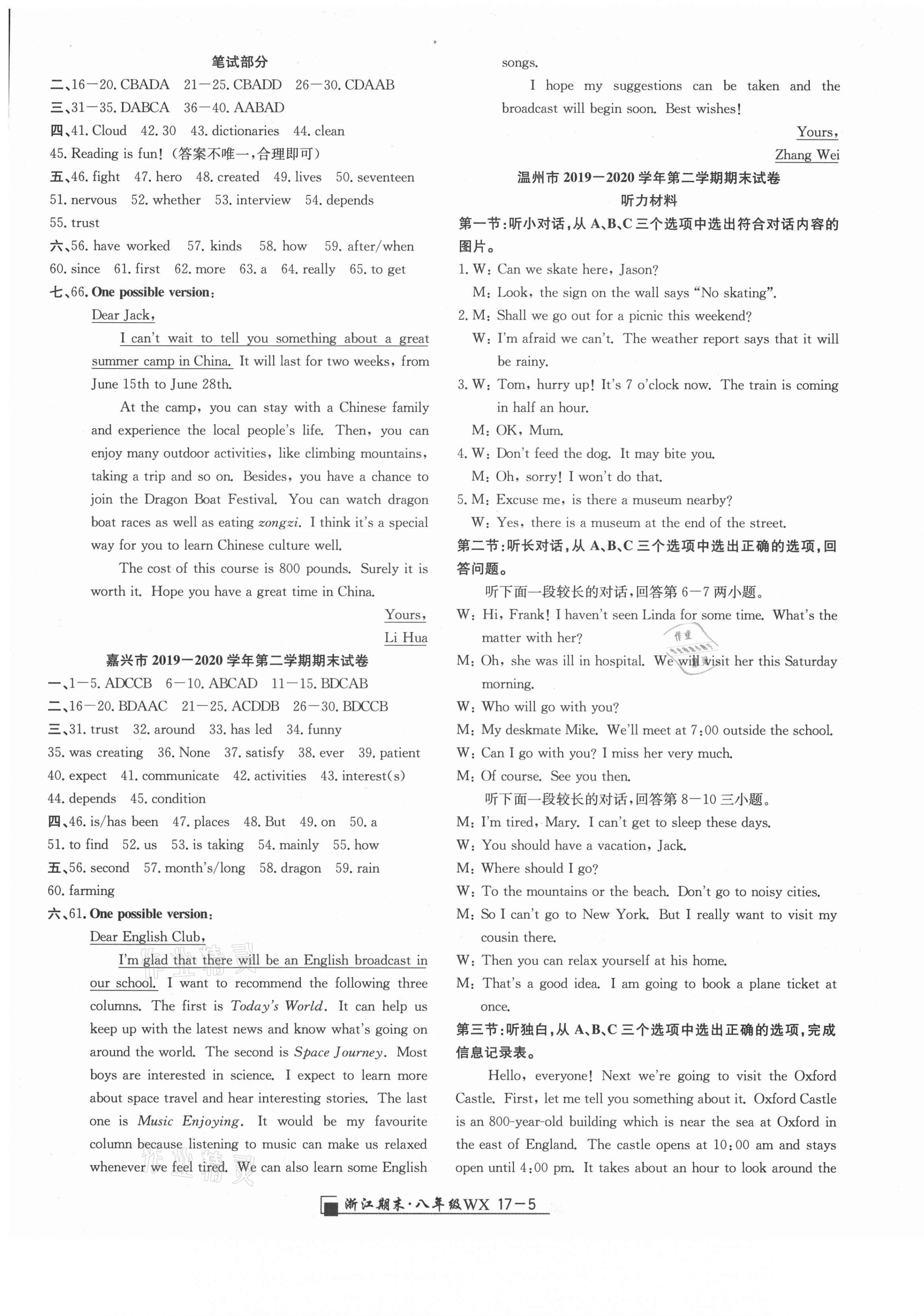 注:目前有些书本章节名称可能整理的还不是很完善,但都是按照顺序排列的,请同学们按照顺序仔细查找。练习册 2021年励耘书业浙江期末八年级英语下册外研版 答案主要是用来给同学们做完题方便对答案用的,请勿直接抄袭。