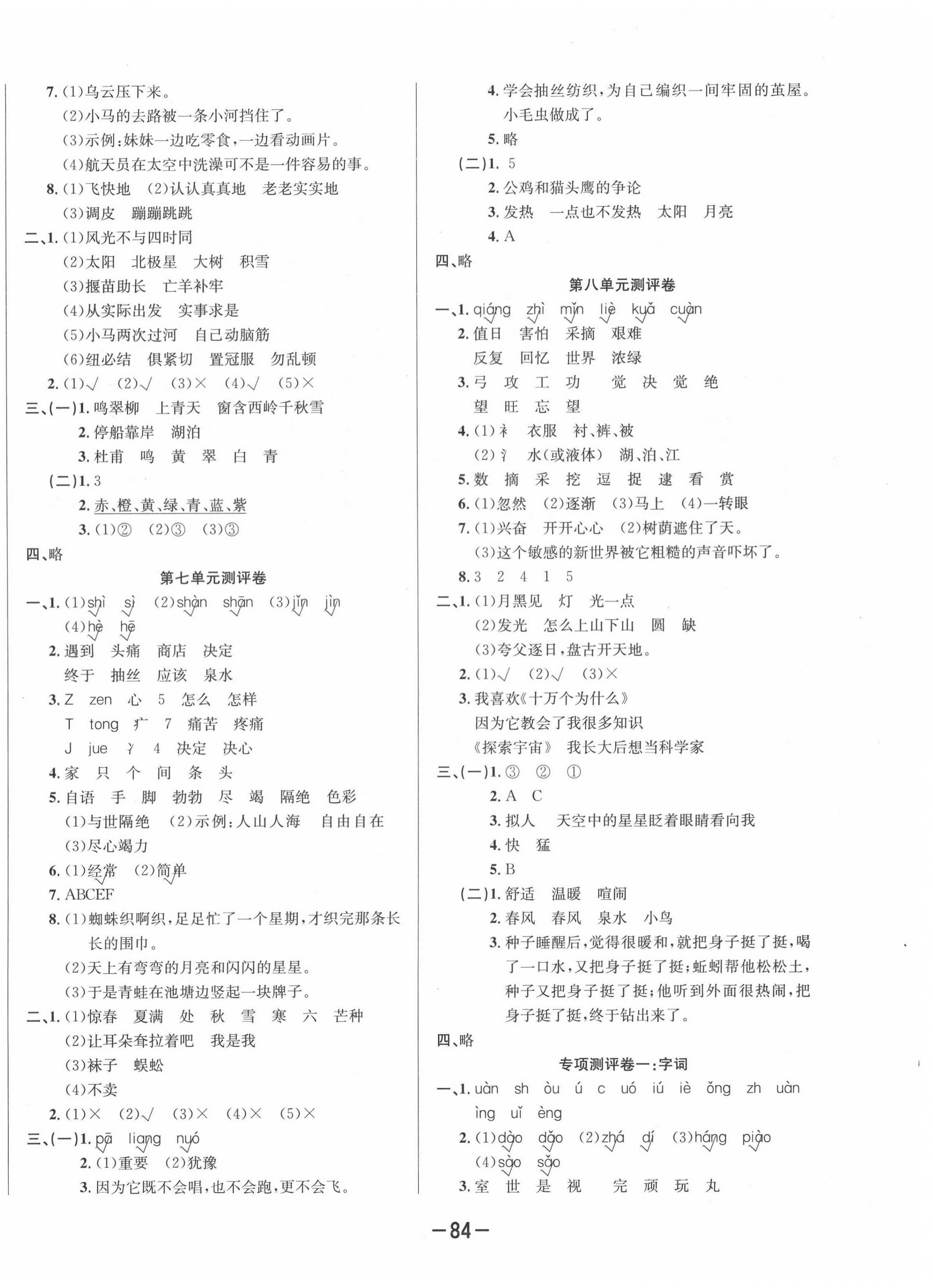 注:目前有些书本章节名称可能整理的还不是很完善,但都是按照顺序排列的,请同学们按照顺序仔细查找。练习册 2021年创新考王完全试卷二年级语文下册人教版 答案主要是用来给同学们做完题方便对答案用的,请勿直接抄袭。