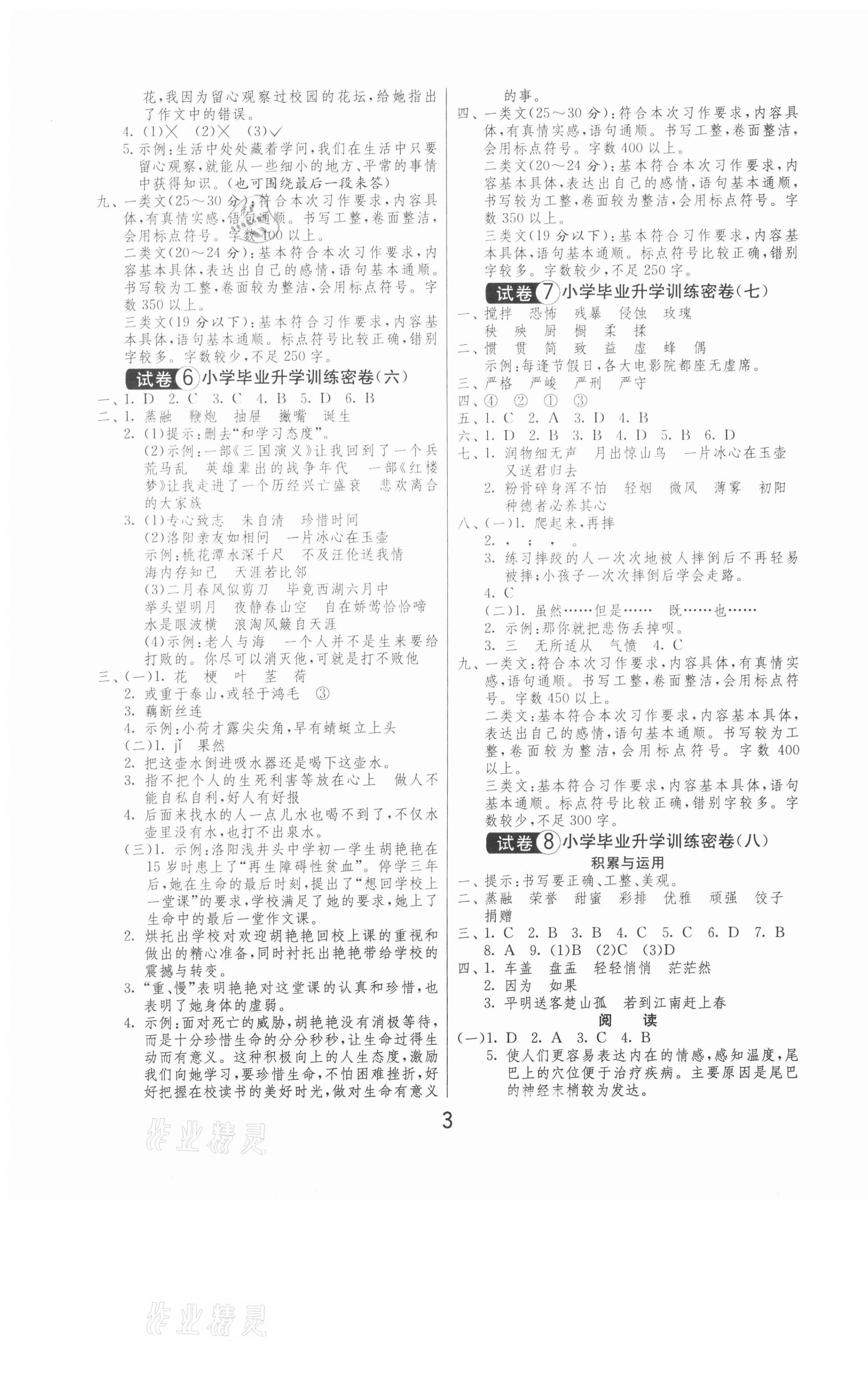 注:目前有些书本章节名称可能整理的还不是很完善,但都是按照顺序排列的,请同学们按照顺序仔细查找。练习册 2021年小学升初中夺冠密卷语文 答案主要是用来给同学们做完题方便对答案用的,请勿直接抄袭。