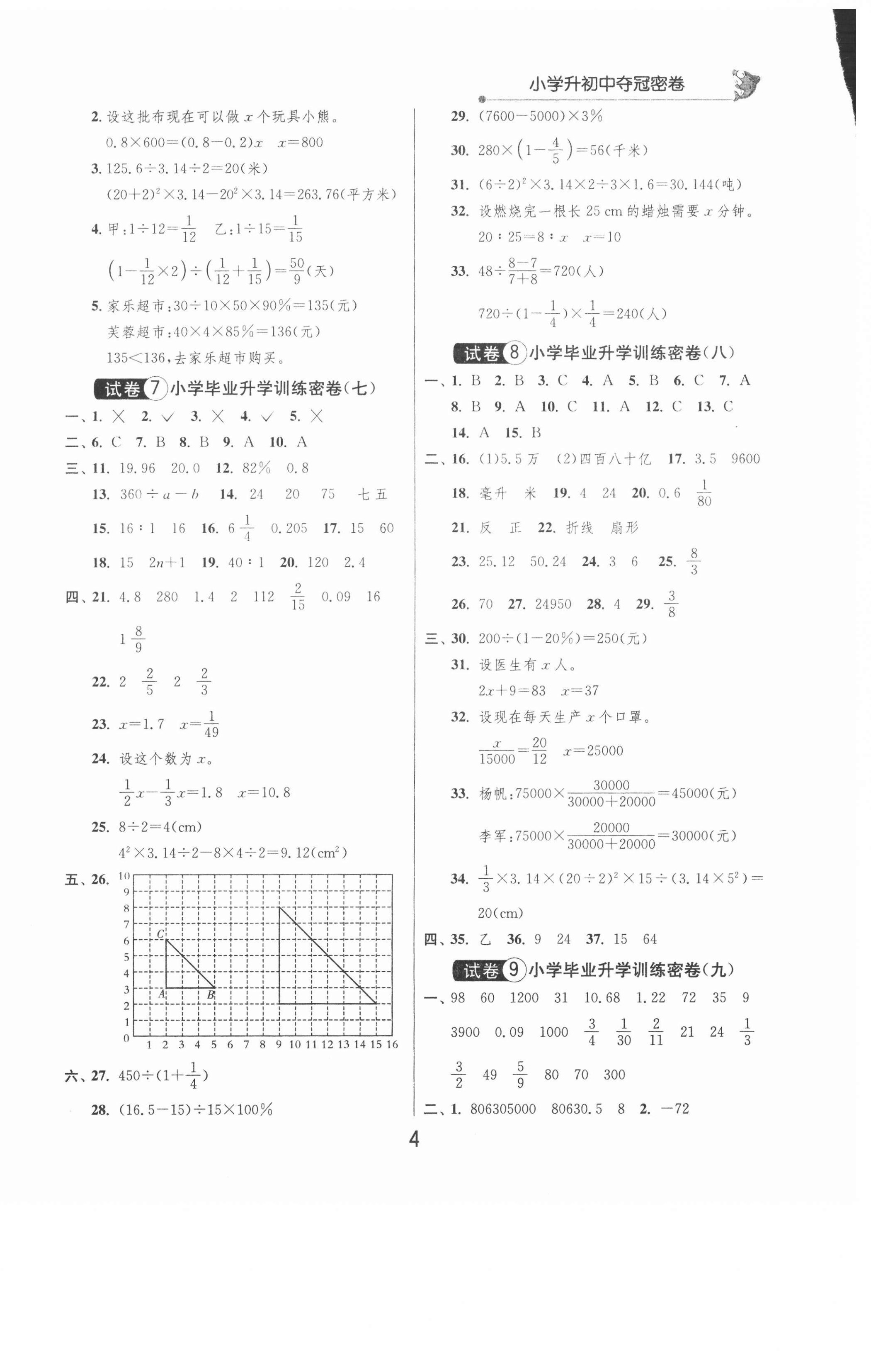 注:目前有些书本章节名称可能整理的还不是很完善,但都是按照顺序排列的,请同学们按照顺序仔细查找。练习册 2021年小学升初中夺冠密卷数学 答案主要是用来给同学们做完题方便对答案用的,请勿直接抄袭。