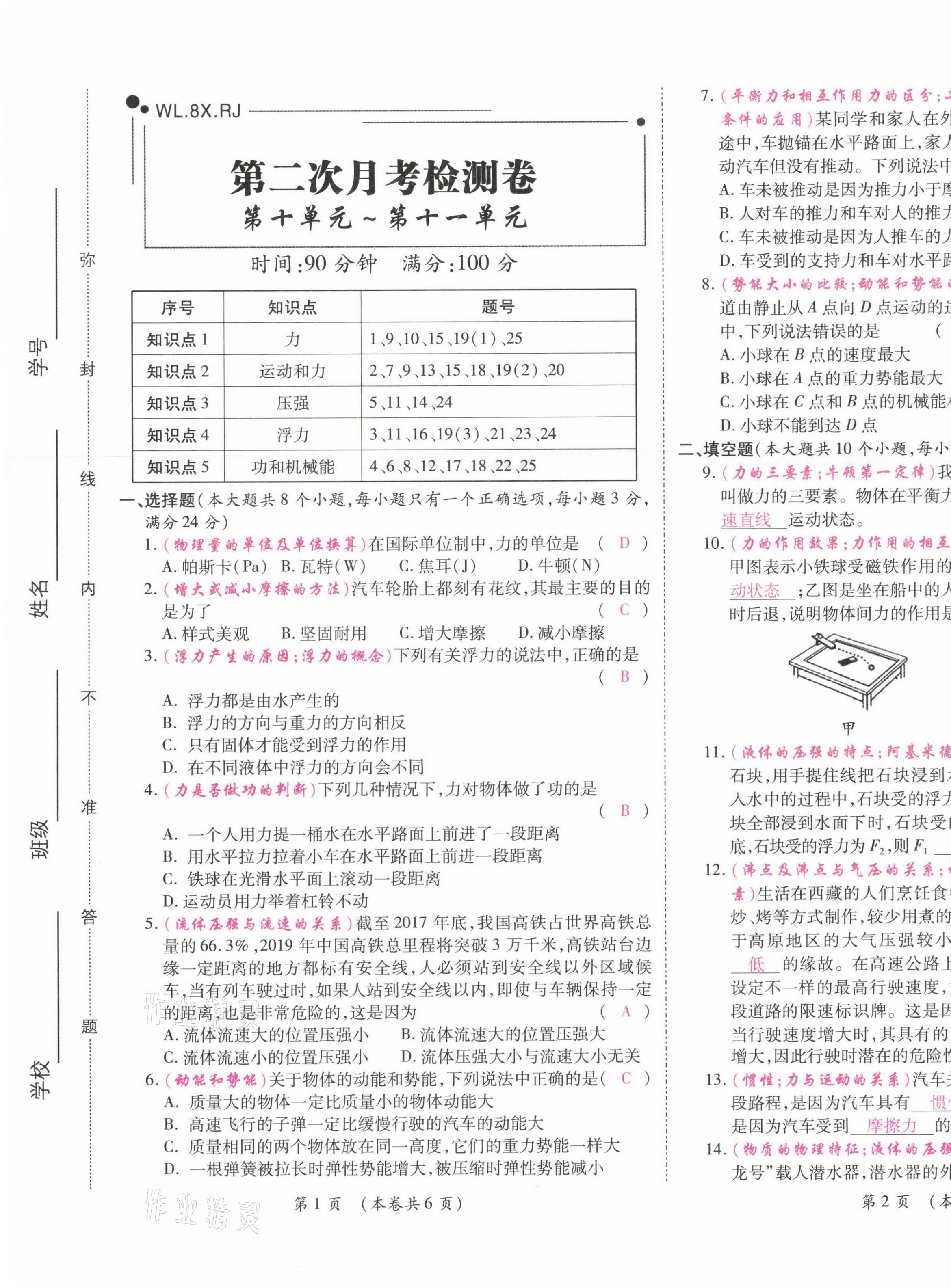 注:目前有些书本章节名称可能整理的还不是很完善,但都是按照顺序排列的,请同学们按照顺序仔细查找。练习册 2021年中考满分直通车核心金卷八年级物理下册人教版云南专版 答案主要是用来给同学们做完题方便对答案用的,请勿直接抄袭。