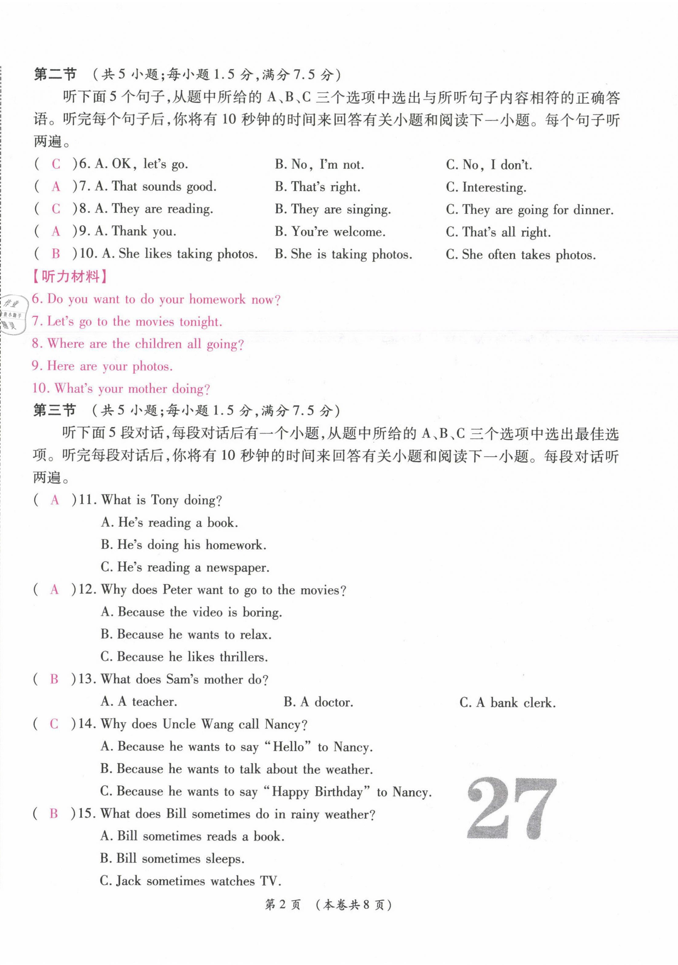 注:目前有些书本章节名称可能整理的还不是很完善,但都是按照顺序排列的,请同学们按照顺序仔细查找。练习册 2021年中考满分直通车核心金卷七年级英语下册人教版云南专版 答案主要是用来给同学们做完题方便对答案用的,请勿直接抄袭。