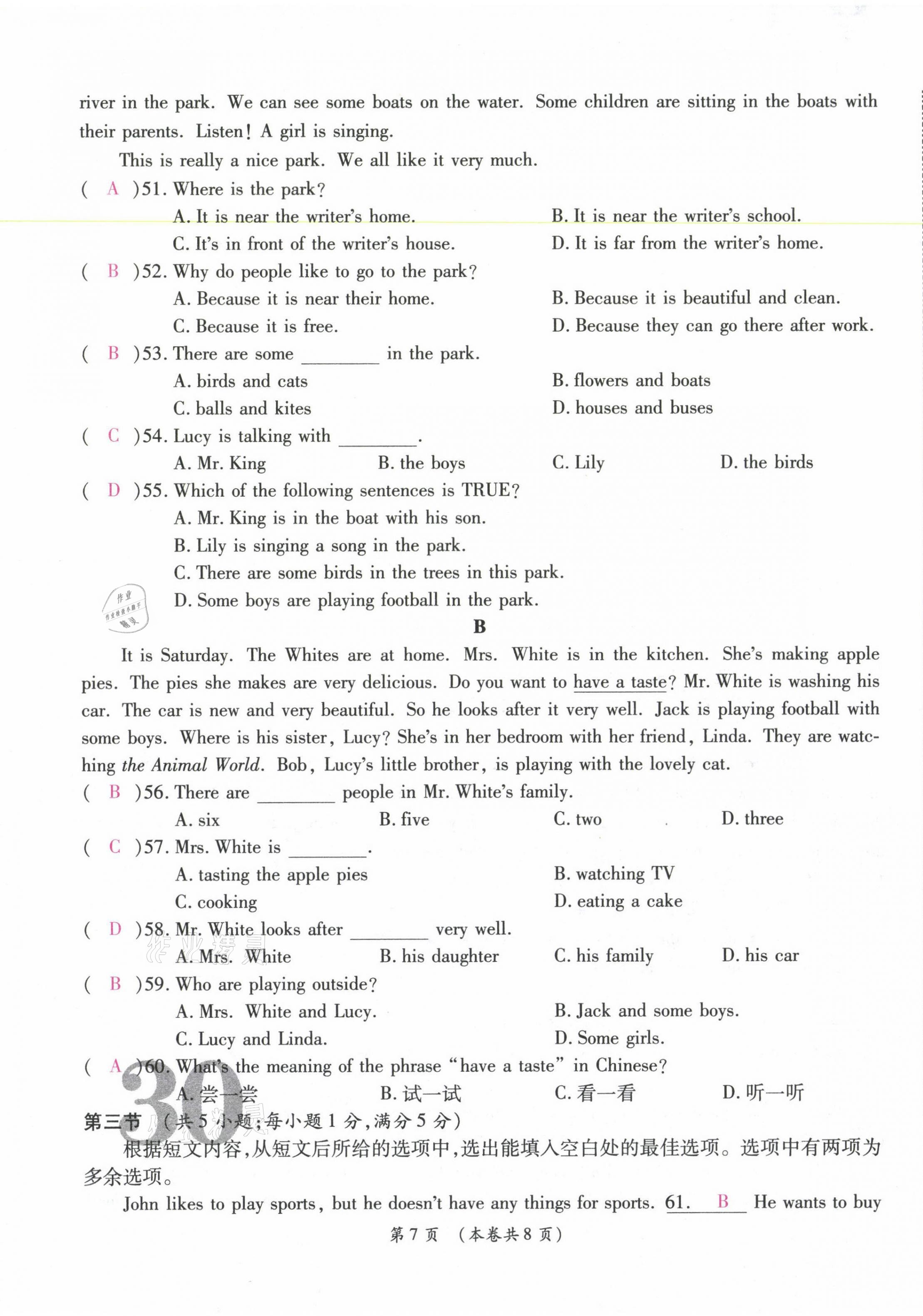 注:目前有些书本章节名称可能整理的还不是很完善,但都是按照顺序排列的,请同学们按照顺序仔细查找。练习册 2021年中考满分直通车核心金卷七年级英语下册人教版云南专版 答案主要是用来给同学们做完题方便对答案用的,请勿直接抄袭。