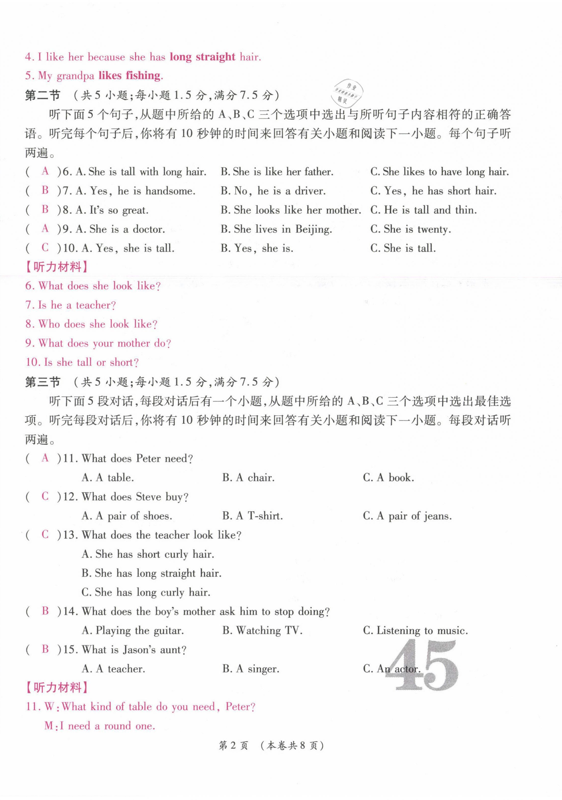 注:目前有些书本章节名称可能整理的还不是很完善,但都是按照顺序排列的,请同学们按照顺序仔细查找。练习册 2021年中考满分直通车核心金卷七年级英语下册人教版云南专版 答案主要是用来给同学们做完题方便对答案用的,请勿直接抄袭。