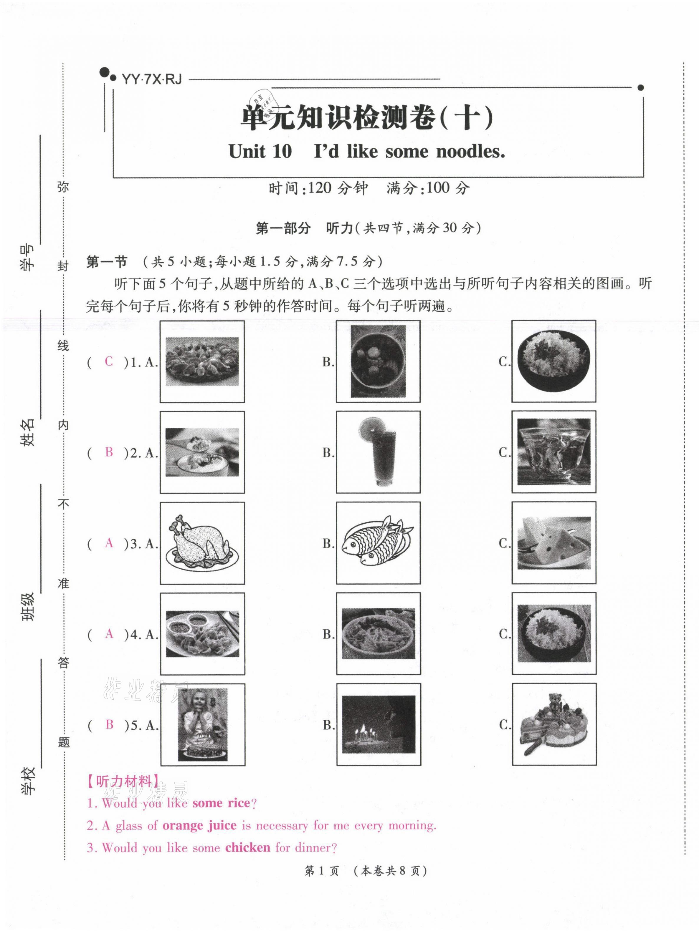 注:目前有些书本章节名称可能整理的还不是很完善,但都是按照顺序排列的,请同学们按照顺序仔细查找。练习册 2021年中考满分直通车核心金卷七年级英语下册人教版云南专版 答案主要是用来给同学们做完题方便对答案用的,请勿直接抄袭。