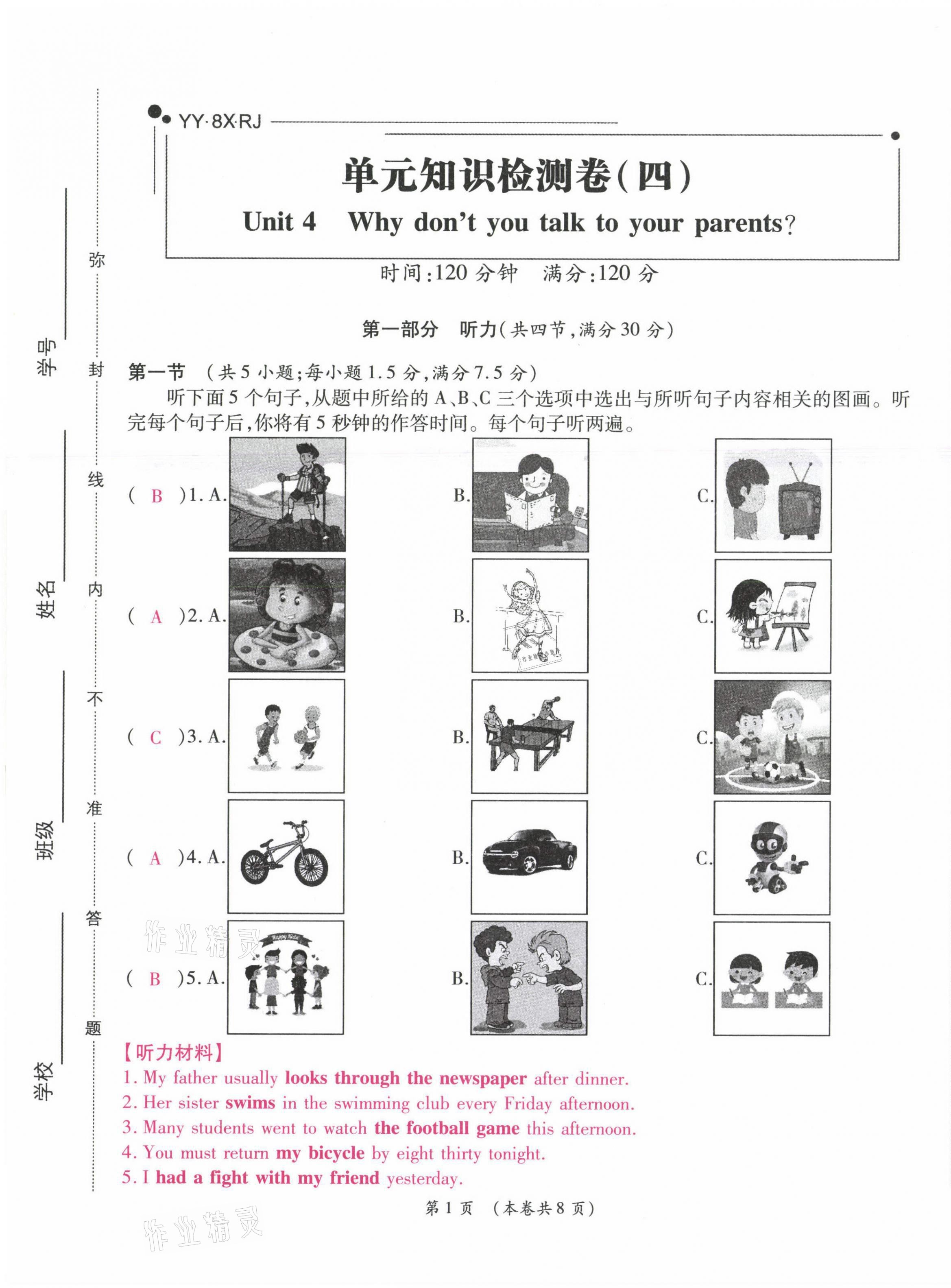 注:目前有些书本章节名称可能整理的还不是很完善,但都是按照顺序排列的,请同学们按照顺序仔细查找。练习册 2021年中考满分直通车核心金卷八年级英语下册人教版云南专版 答案主要是用来给同学们做完题方便对答案用的,请勿直接抄袭。