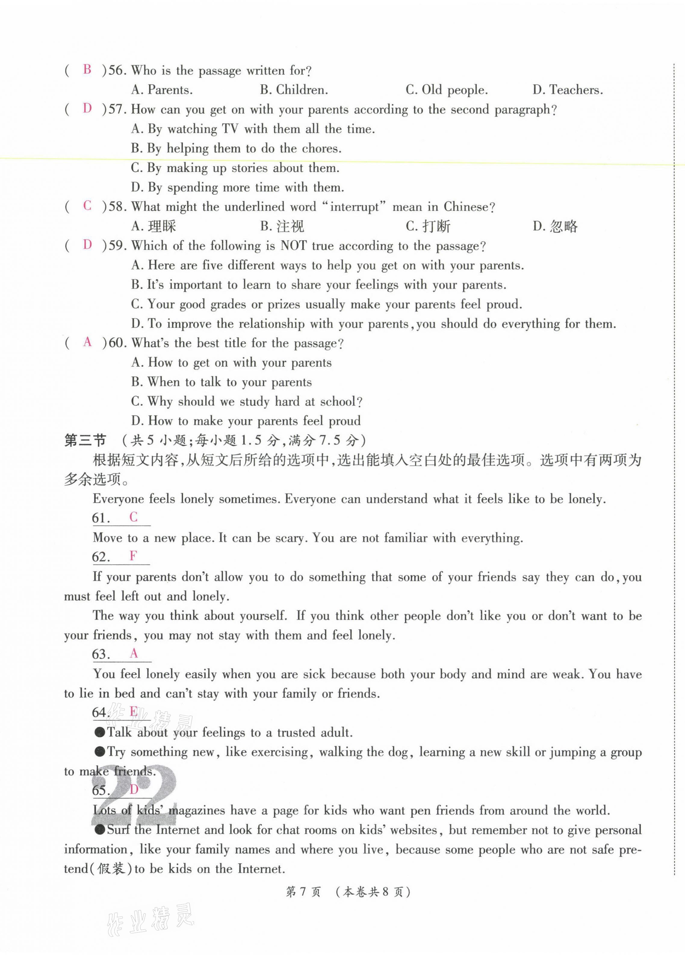 注:目前有些书本章节名称可能整理的还不是很完善,但都是按照顺序排列的,请同学们按照顺序仔细查找。练习册 2021年中考满分直通车核心金卷八年级英语下册人教版云南专版 答案主要是用来给同学们做完题方便对答案用的,请勿直接抄袭。