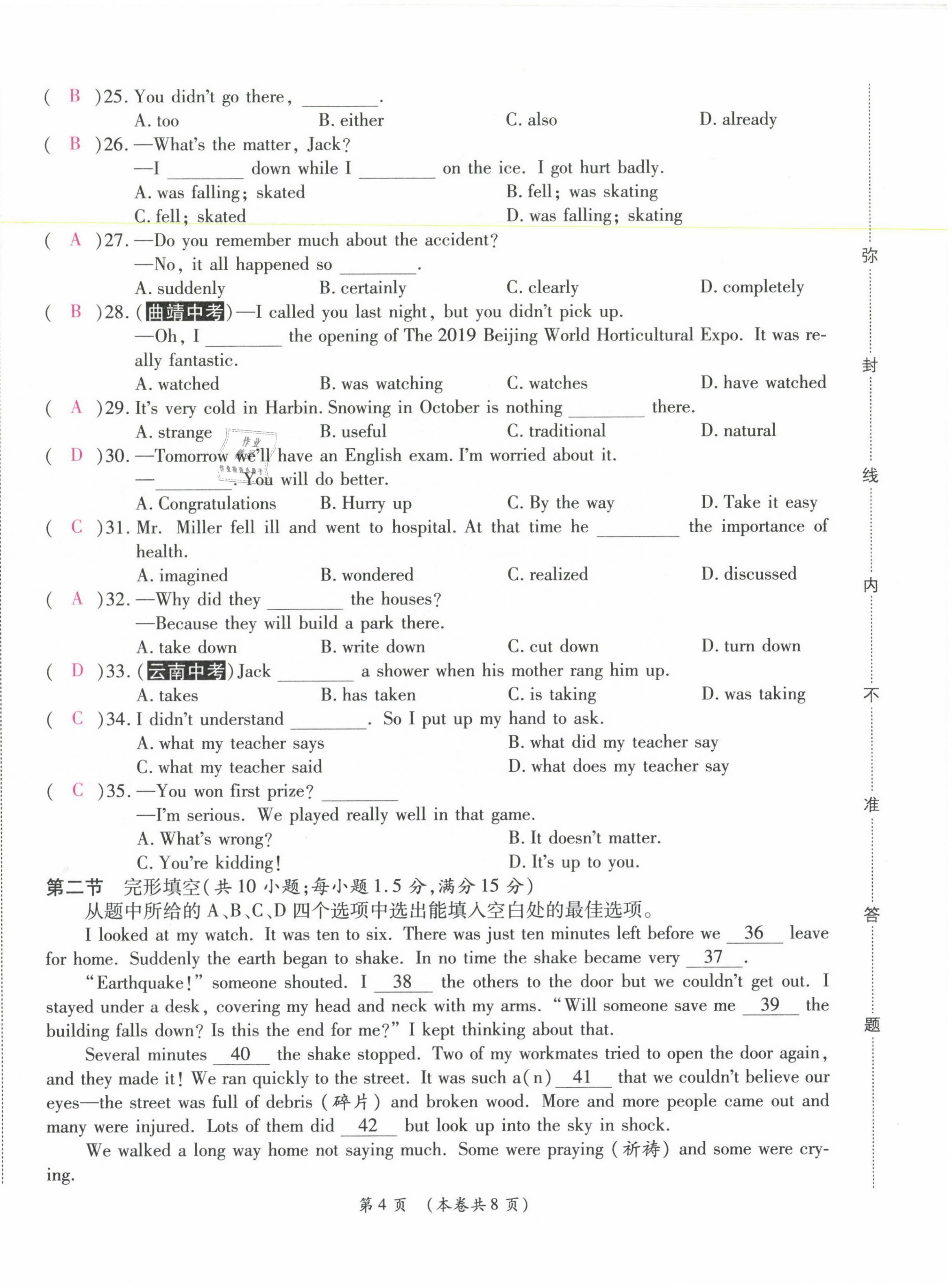 注:目前有些书本章节名称可能整理的还不是很完善,但都是按照顺序排列的,请同学们按照顺序仔细查找。练习册 2021年中考满分直通车核心金卷八年级英语下册人教版云南专版 答案主要是用来给同学们做完题方便对答案用的,请勿直接抄袭。