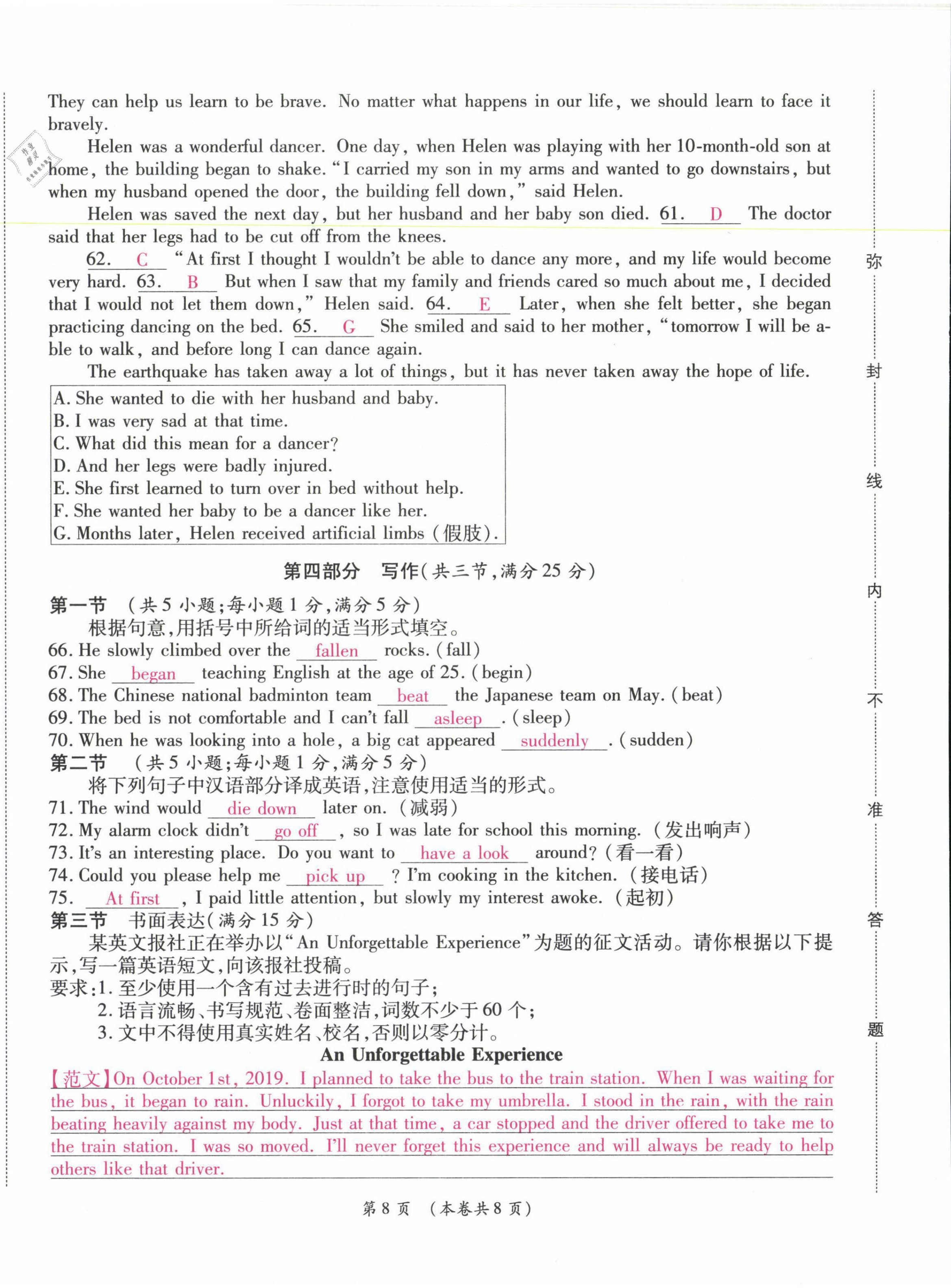 注:目前有些书本章节名称可能整理的还不是很完善,但都是按照顺序排列的,请同学们按照顺序仔细查找。练习册 2021年中考满分直通车核心金卷八年级英语下册人教版云南专版 答案主要是用来给同学们做完题方便对答案用的,请勿直接抄袭。