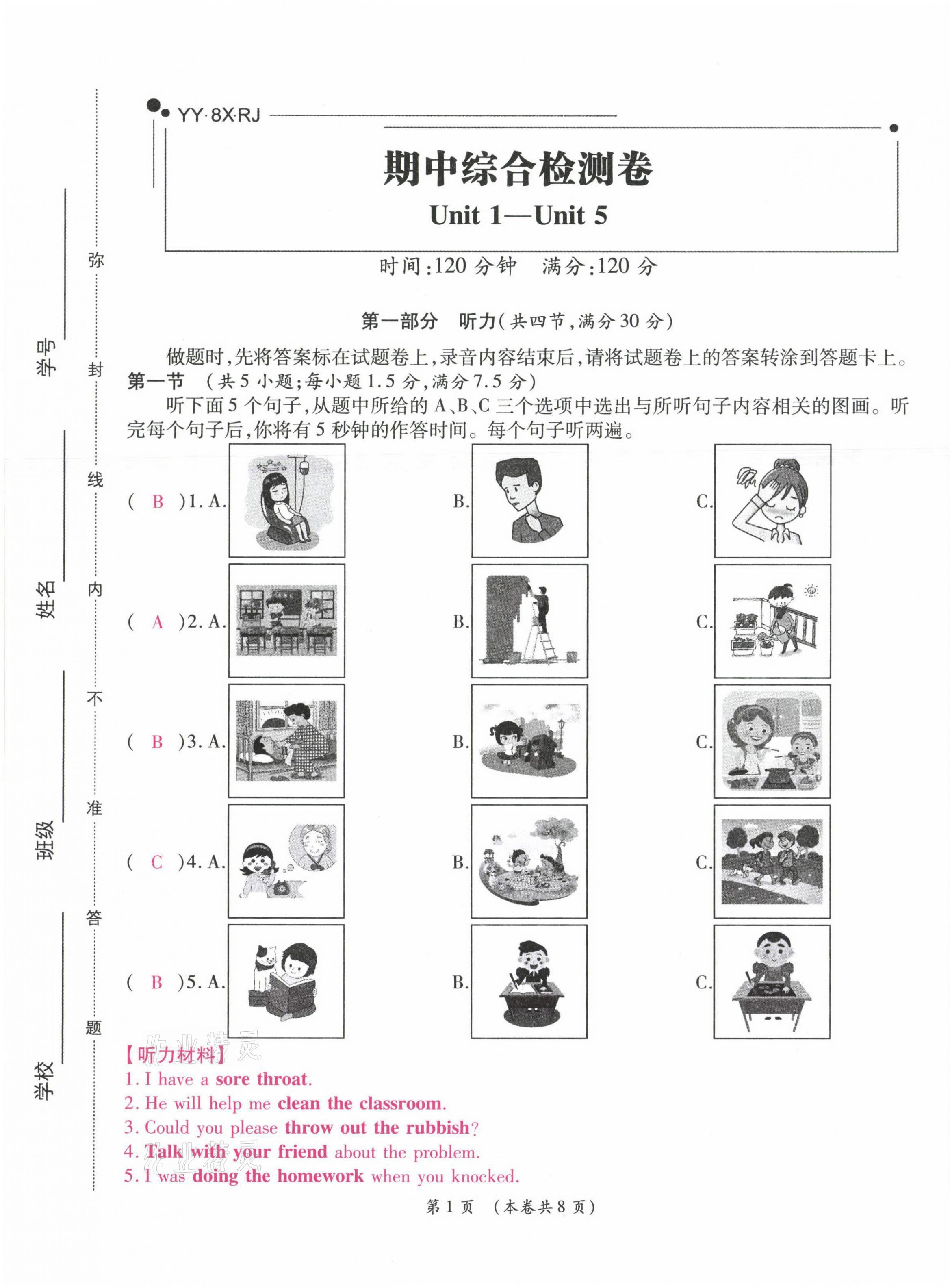 注:目前有些书本章节名称可能整理的还不是很完善,但都是按照顺序排列的,请同学们按照顺序仔细查找。练习册 2021年中考满分直通车核心金卷八年级英语下册人教版云南专版 答案主要是用来给同学们做完题方便对答案用的,请勿直接抄袭。
