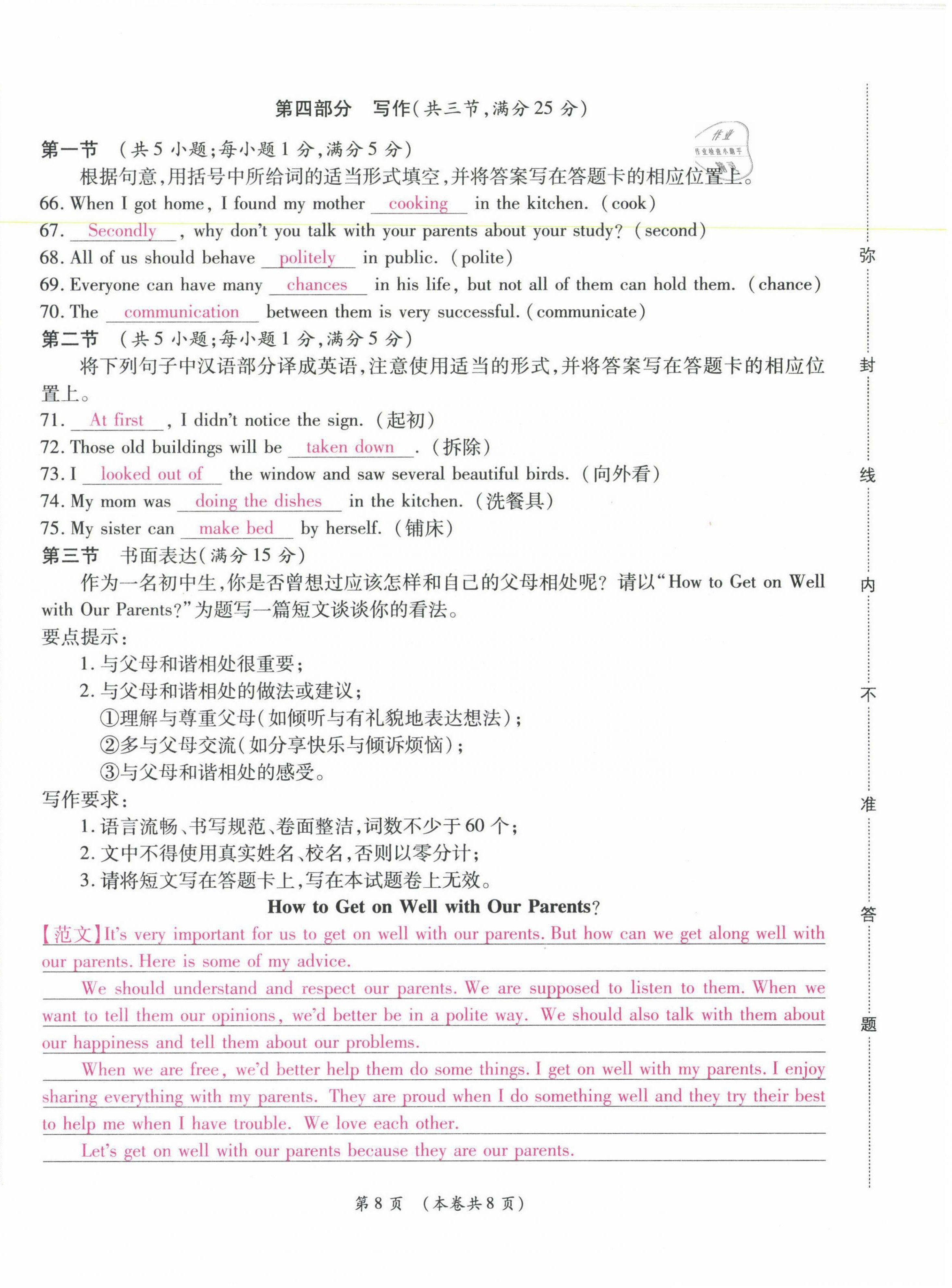 注:目前有些书本章节名称可能整理的还不是很完善,但都是按照顺序排列的,请同学们按照顺序仔细查找。练习册 2021年中考满分直通车核心金卷八年级英语下册人教版云南专版 答案主要是用来给同学们做完题方便对答案用的,请勿直接抄袭。