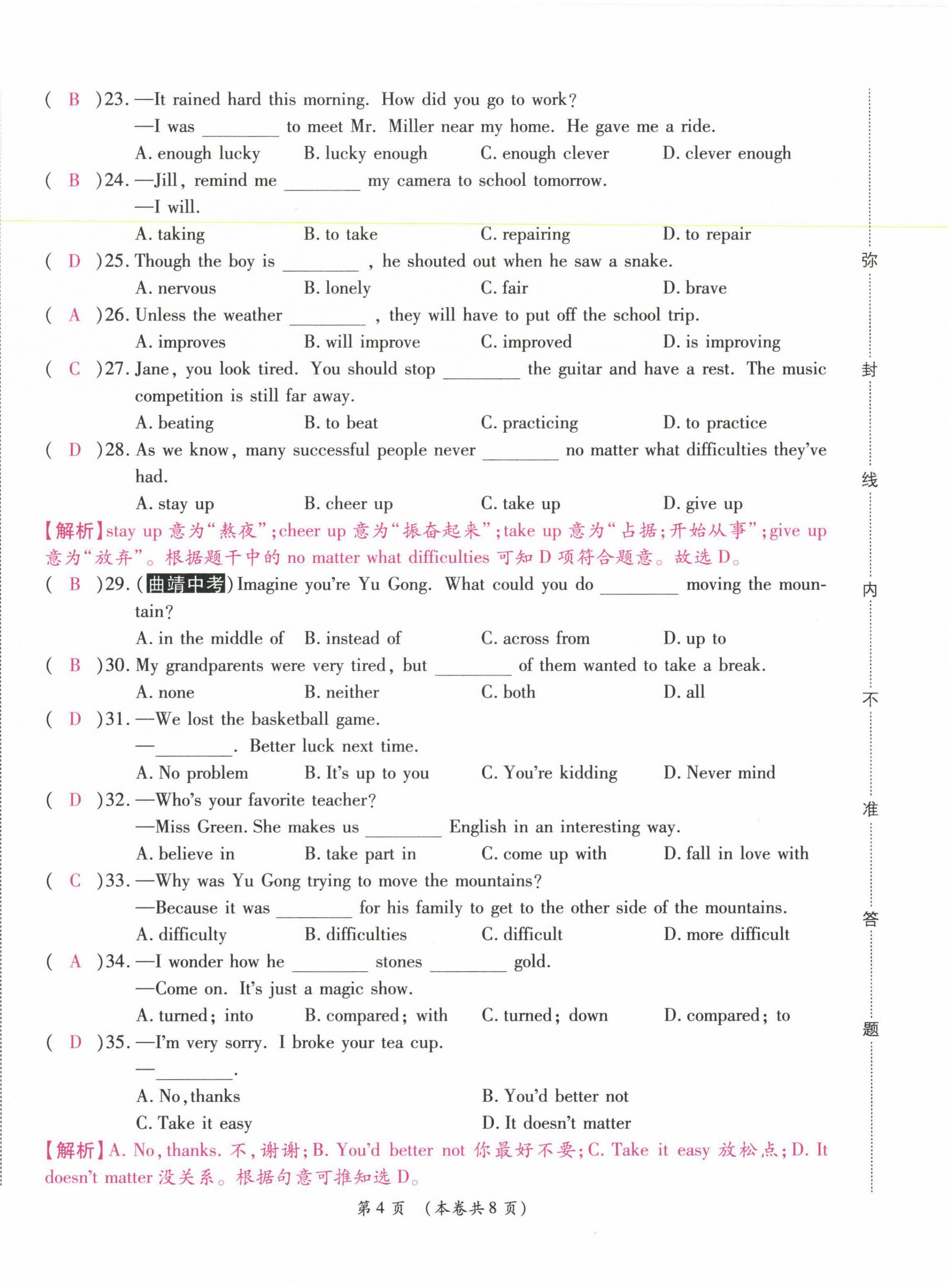 注:目前有些书本章节名称可能整理的还不是很完善,但都是按照顺序排列的,请同学们按照顺序仔细查找。练习册 2021年中考满分直通车核心金卷八年级英语下册人教版云南专版 答案主要是用来给同学们做完题方便对答案用的,请勿直接抄袭。
