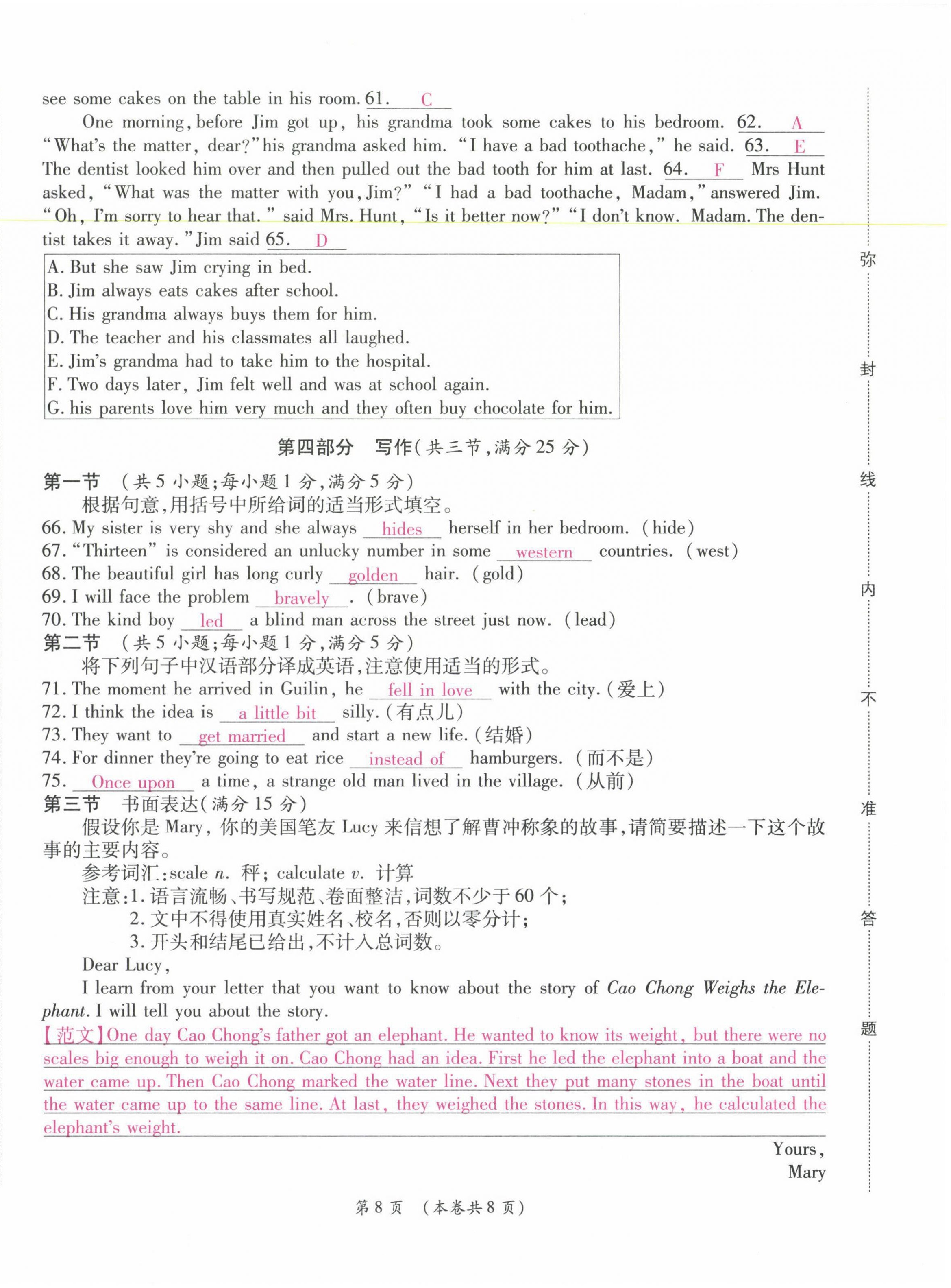 注:目前有些书本章节名称可能整理的还不是很完善,但都是按照顺序排列的,请同学们按照顺序仔细查找。练习册 2021年中考满分直通车核心金卷八年级英语下册人教版云南专版 答案主要是用来给同学们做完题方便对答案用的,请勿直接抄袭。