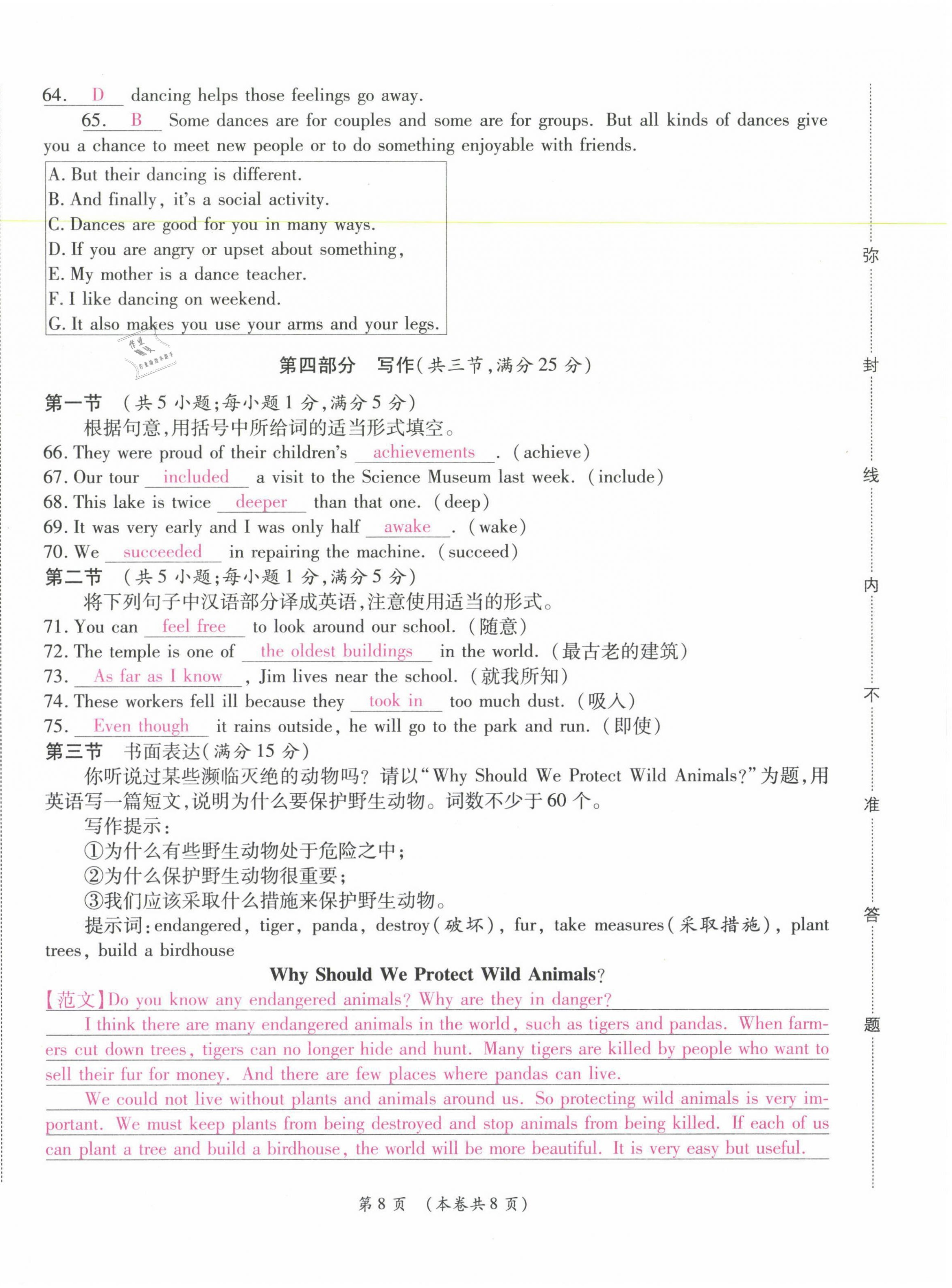 注:目前有些书本章节名称可能整理的还不是很完善,但都是按照顺序排列的,请同学们按照顺序仔细查找。练习册 2021年中考满分直通车核心金卷八年级英语下册人教版云南专版 答案主要是用来给同学们做完题方便对答案用的,请勿直接抄袭。