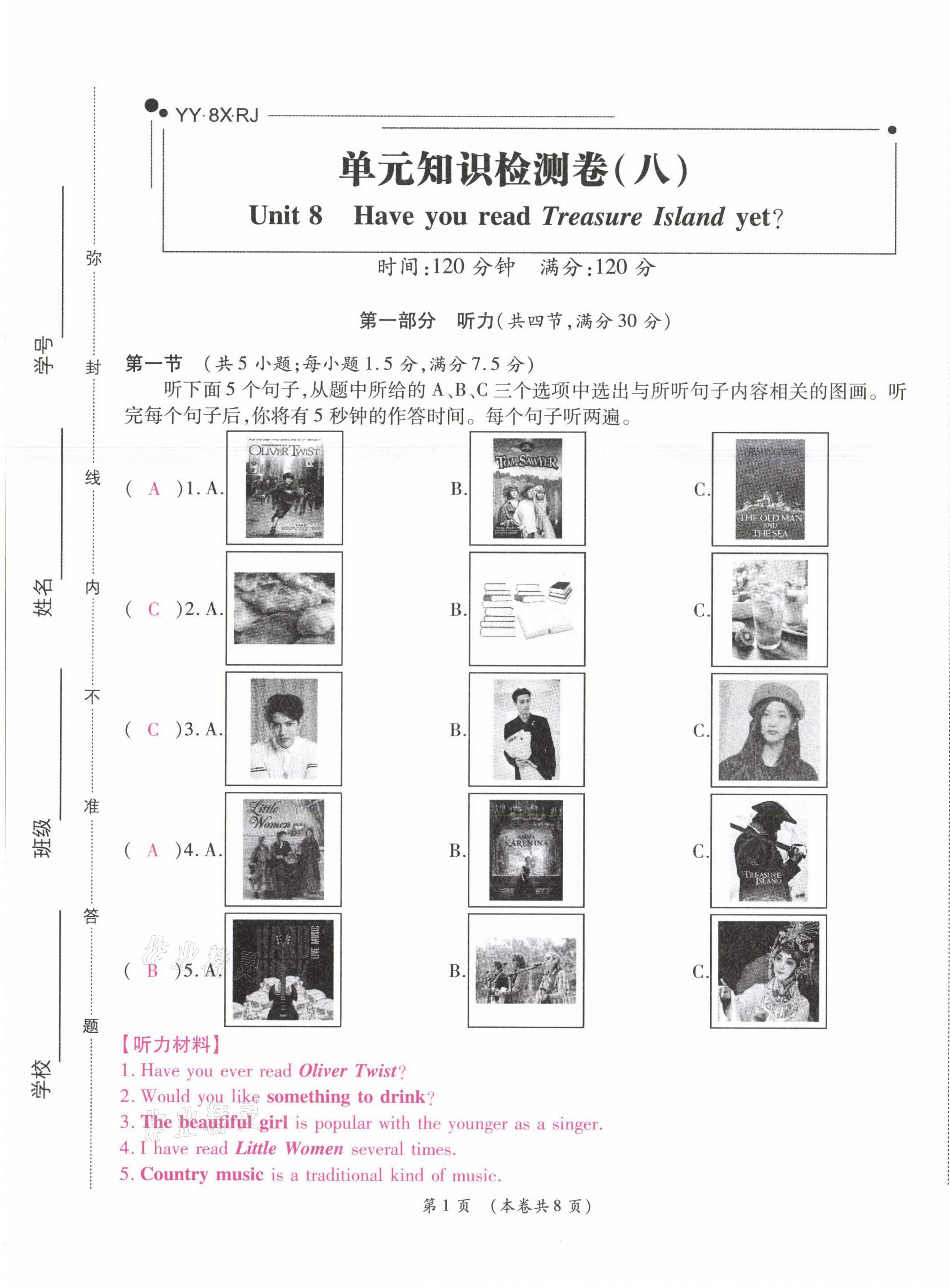 注:目前有些书本章节名称可能整理的还不是很完善,但都是按照顺序排列的,请同学们按照顺序仔细查找。练习册 2021年中考满分直通车核心金卷八年级英语下册人教版云南专版 答案主要是用来给同学们做完题方便对答案用的,请勿直接抄袭。