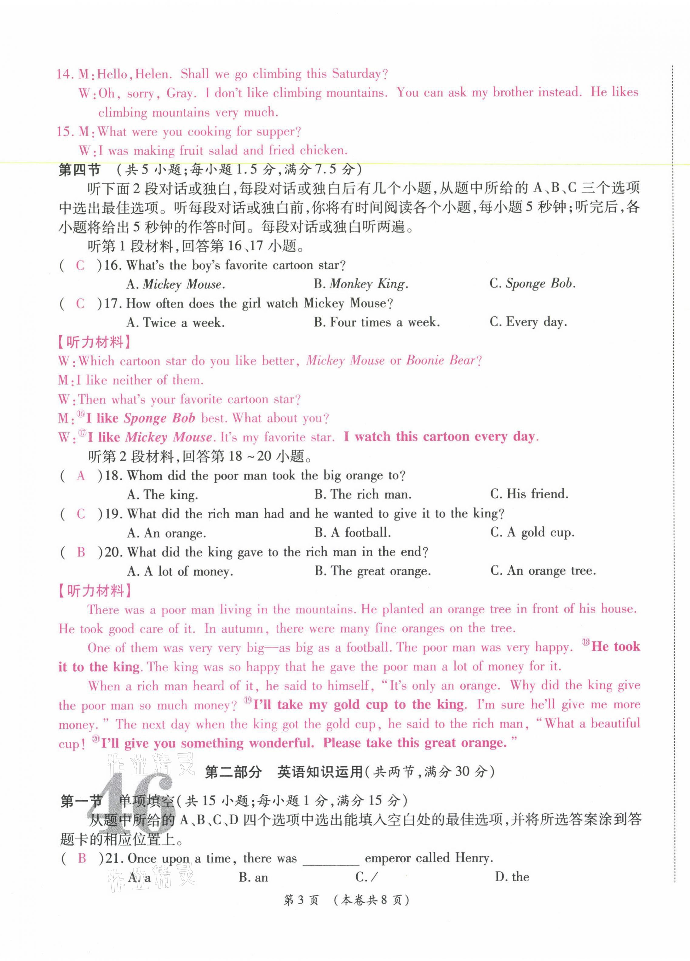 注:目前有些书本章节名称可能整理的还不是很完善,但都是按照顺序排列的,请同学们按照顺序仔细查找。练习册 2021年中考满分直通车核心金卷八年级英语下册人教版云南专版 答案主要是用来给同学们做完题方便对答案用的,请勿直接抄袭。