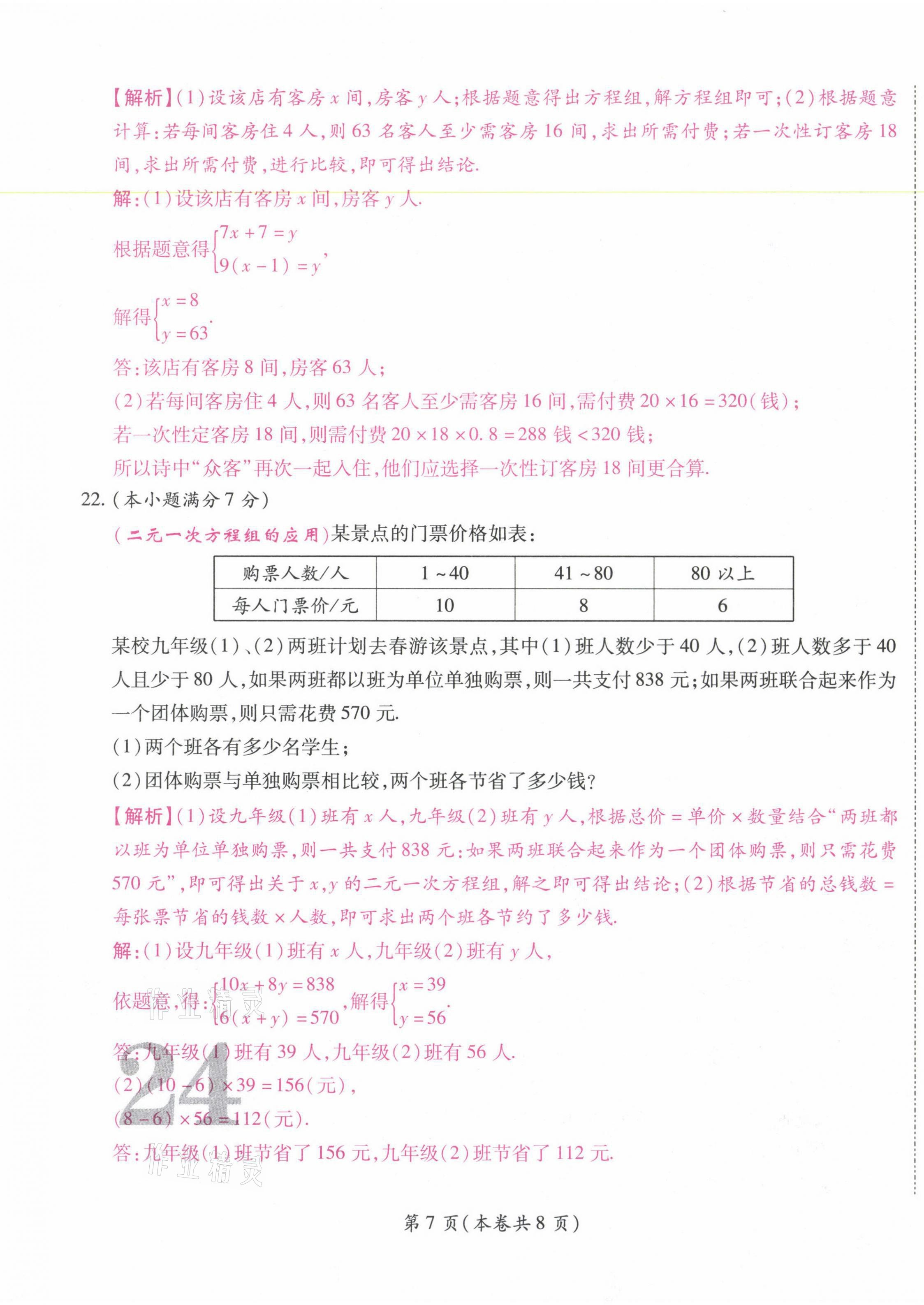 2021年中考满分直通车核心金卷七年级数学下册人教版云南专版