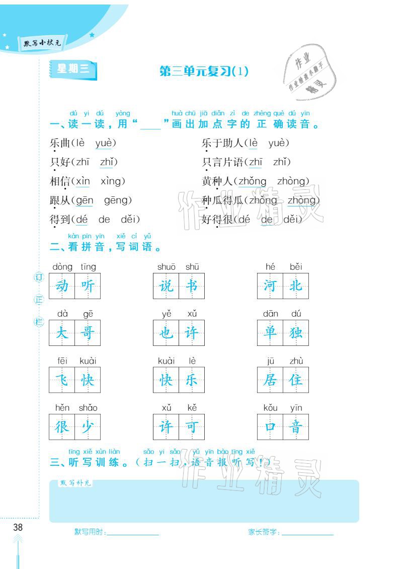 2021年默写小状元一年级下册长江少年儿童出版社