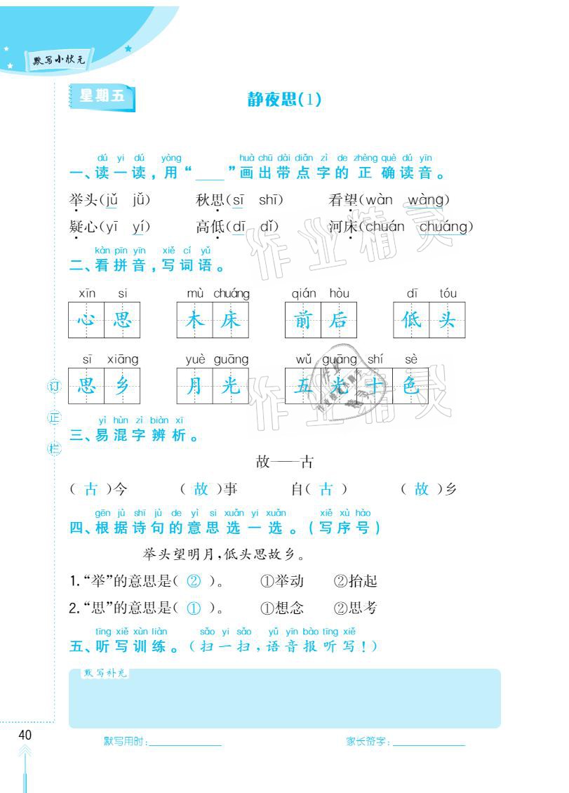 注:目前有些书本章节名称可能整理的还不是很完善,但都是按照顺序排列的,请同学们按照顺序仔细查找。练习册 2021年默写小状元一年级下册长江少年儿童出版社 答案主要是用来给同学们做完题方便对答案用的,请勿直接抄袭。