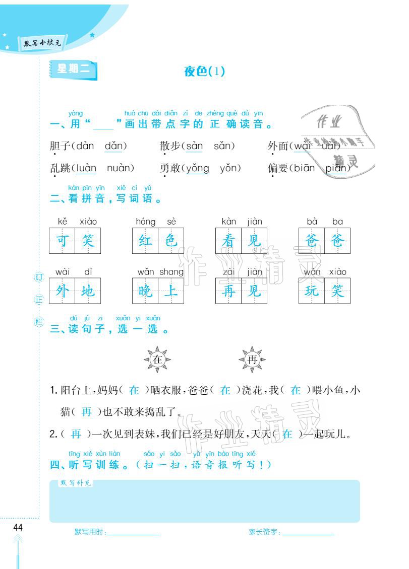 注:目前有些书本章节名称可能整理的还不是很完善,但都是按照顺序排列的,请同学们按照顺序仔细查找。练习册 2021年默写小状元一年级下册长江少年儿童出版社 答案主要是用来给同学们做完题方便对答案用的,请勿直接抄袭。
