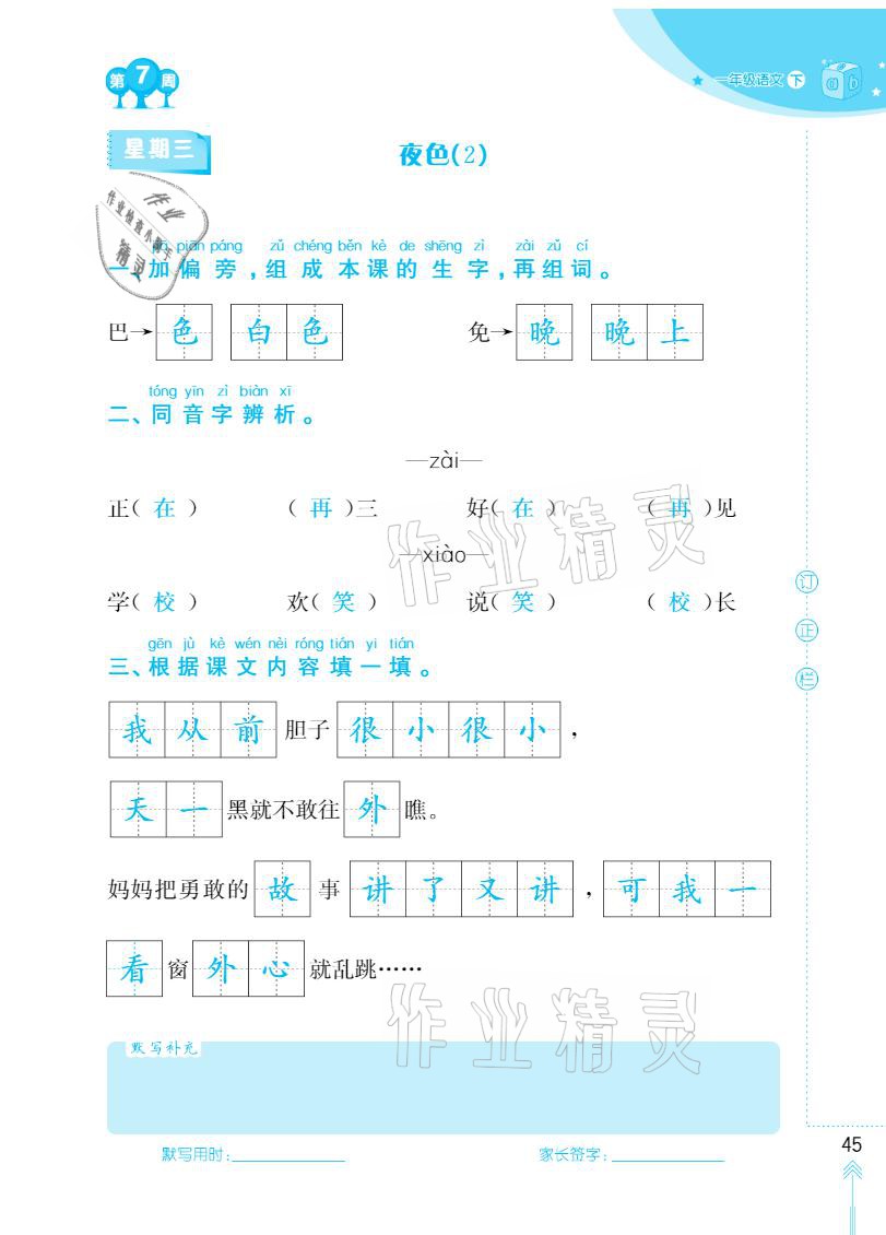 2021年默写小状元一年级下册长江少年儿童出版社