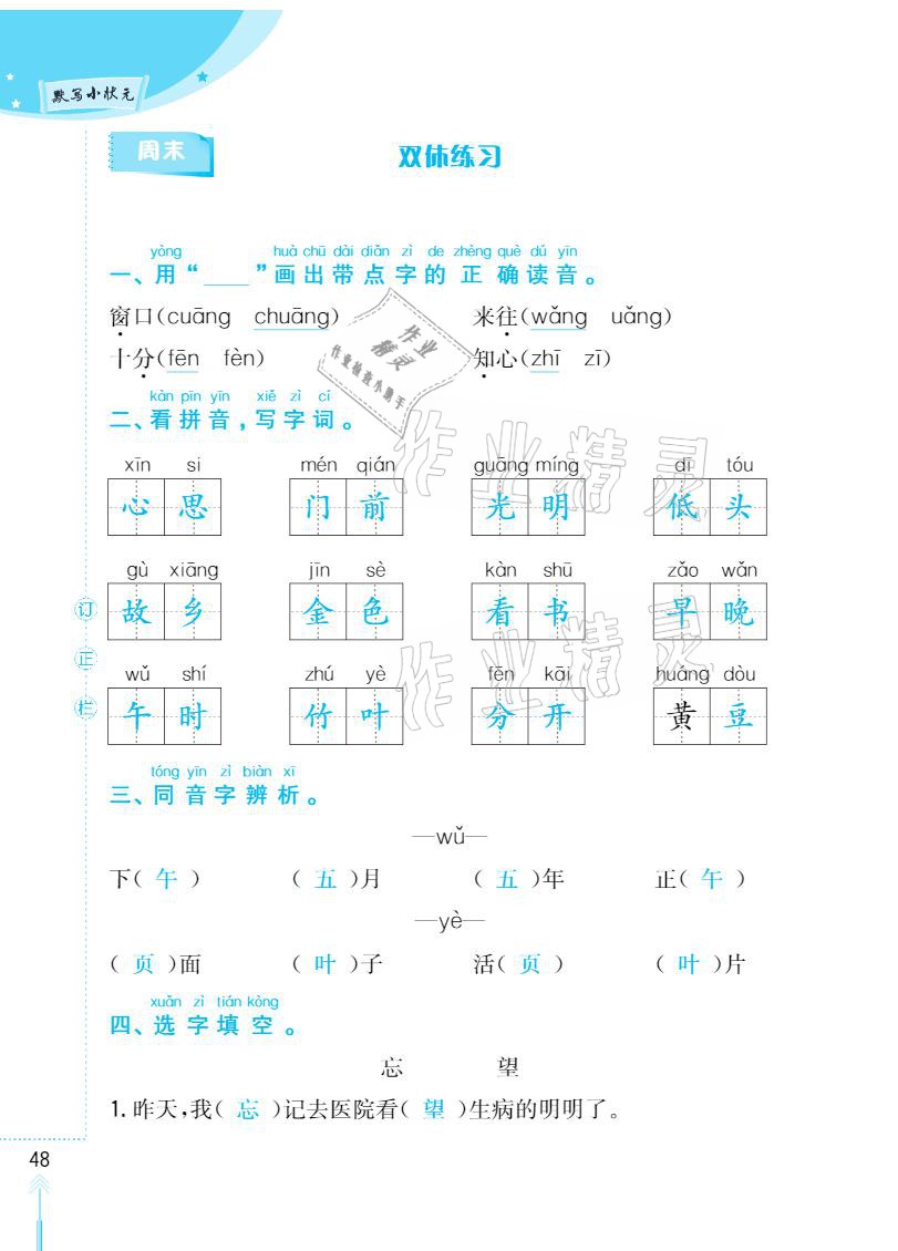 注:目前有些书本章节名称可能整理的还不是很完善,但都是按照顺序排列的,请同学们按照顺序仔细查找。练习册 2021年默写小状元一年级下册长江少年儿童出版社 答案主要是用来给同学们做完题方便对答案用的,请勿直接抄袭。