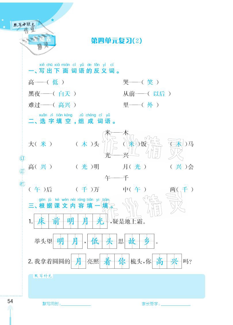 注:目前有些书本章节名称可能整理的还不是很完善,但都是按照顺序排列的,请同学们按照顺序仔细查找。练习册 2021年默写小状元一年级下册长江少年儿童出版社 答案主要是用来给同学们做完题方便对答案用的,请勿直接抄袭。