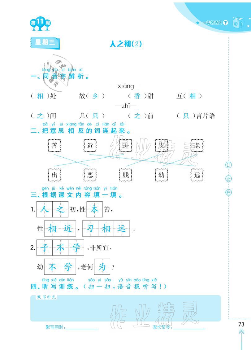 注:目前有些书本章节名称可能整理的还不是很完善,但都是按照顺序排列的,请同学们按照顺序仔细查找。练习册 2021年默写小状元一年级下册长江少年儿童出版社 答案主要是用来给同学们做完题方便对答案用的,请勿直接抄袭。