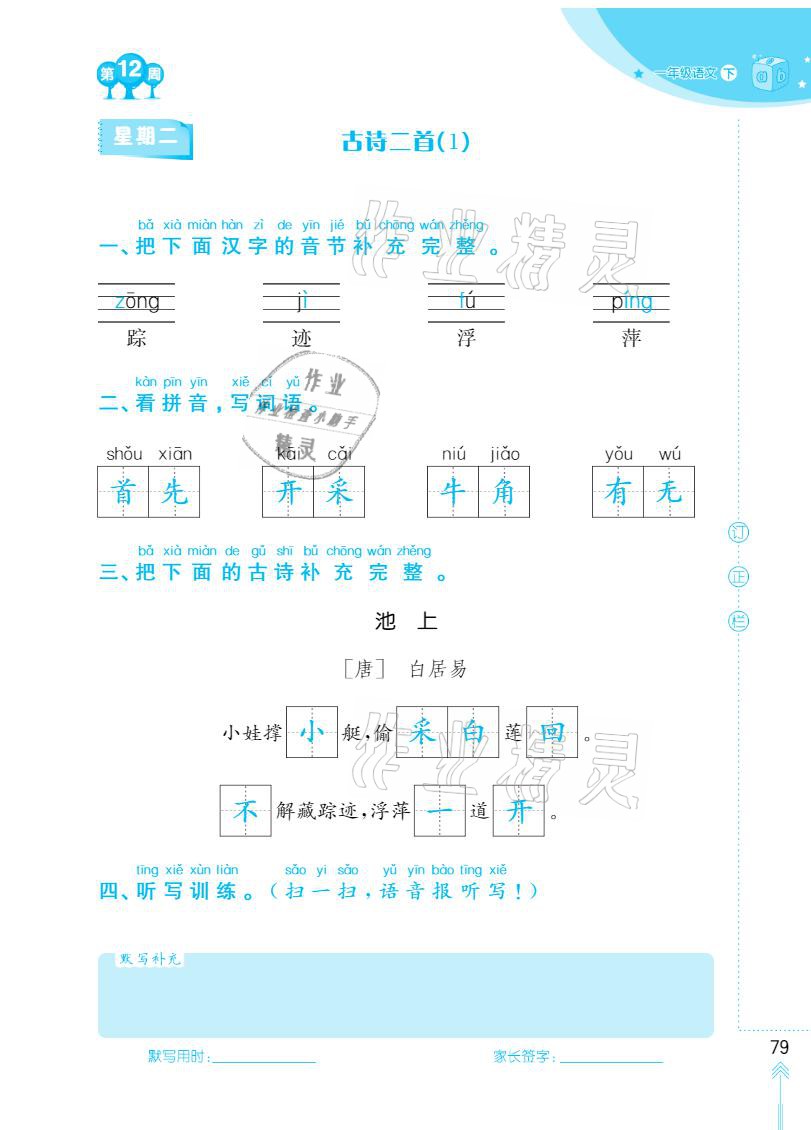 注:目前有些书本章节名称可能整理的还不是很完善,但都是按照顺序排列的,请同学们按照顺序仔细查找。练习册 2021年默写小状元一年级下册长江少年儿童出版社 答案主要是用来给同学们做完题方便对答案用的,请勿直接抄袭。
