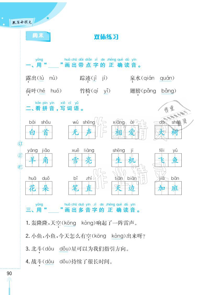 2021年默写小状元一年级下册长江少年儿童出版社