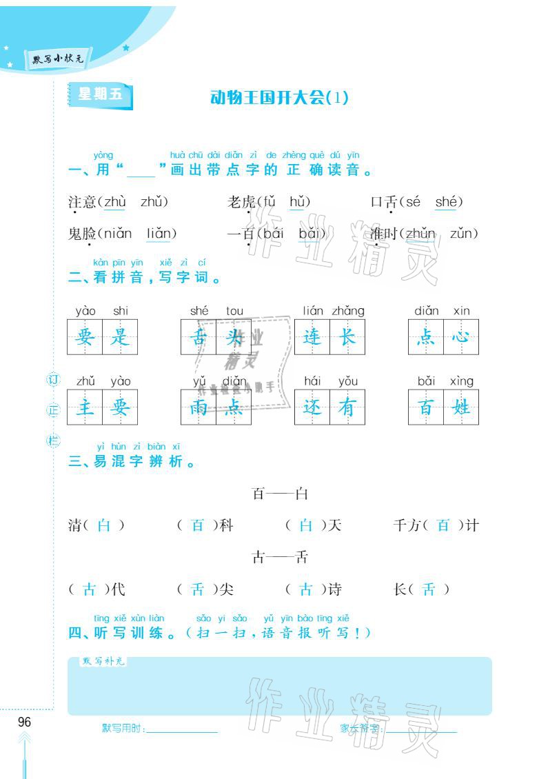 注:目前有些书本章节名称可能整理的还不是很完善,但都是按照顺序排列的,请同学们按照顺序仔细查找。练习册 2021年默写小状元一年级下册长江少年儿童出版社 答案主要是用来给同学们做完题方便对答案用的,请勿直接抄袭。