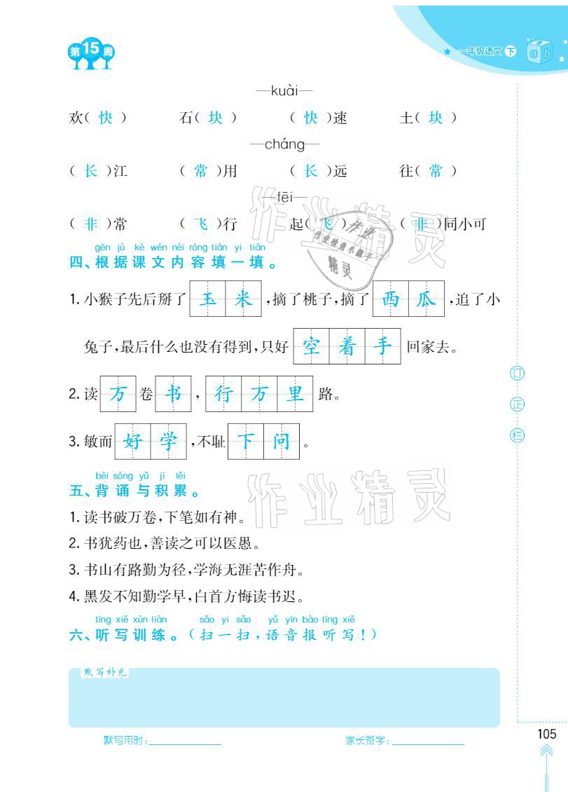 注:目前有些书本章节名称可能整理的还不是很完善,但都是按照顺序排列的,请同学们按照顺序仔细查找。练习册 2021年默写小状元一年级下册长江少年儿童出版社 答案主要是用来给同学们做完题方便对答案用的,请勿直接抄袭。