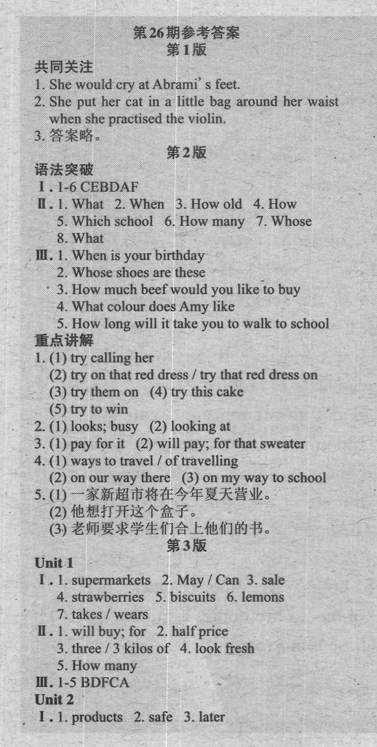 注:目前有些书本章节名称可能整理的还不是很完善,但都是按照顺序排列的,请同学们按照顺序仔细查找。练习册 2021年英语周报七年级外研版 答案主要是用来给同学们做完题方便对答案用的,请勿直接抄袭。